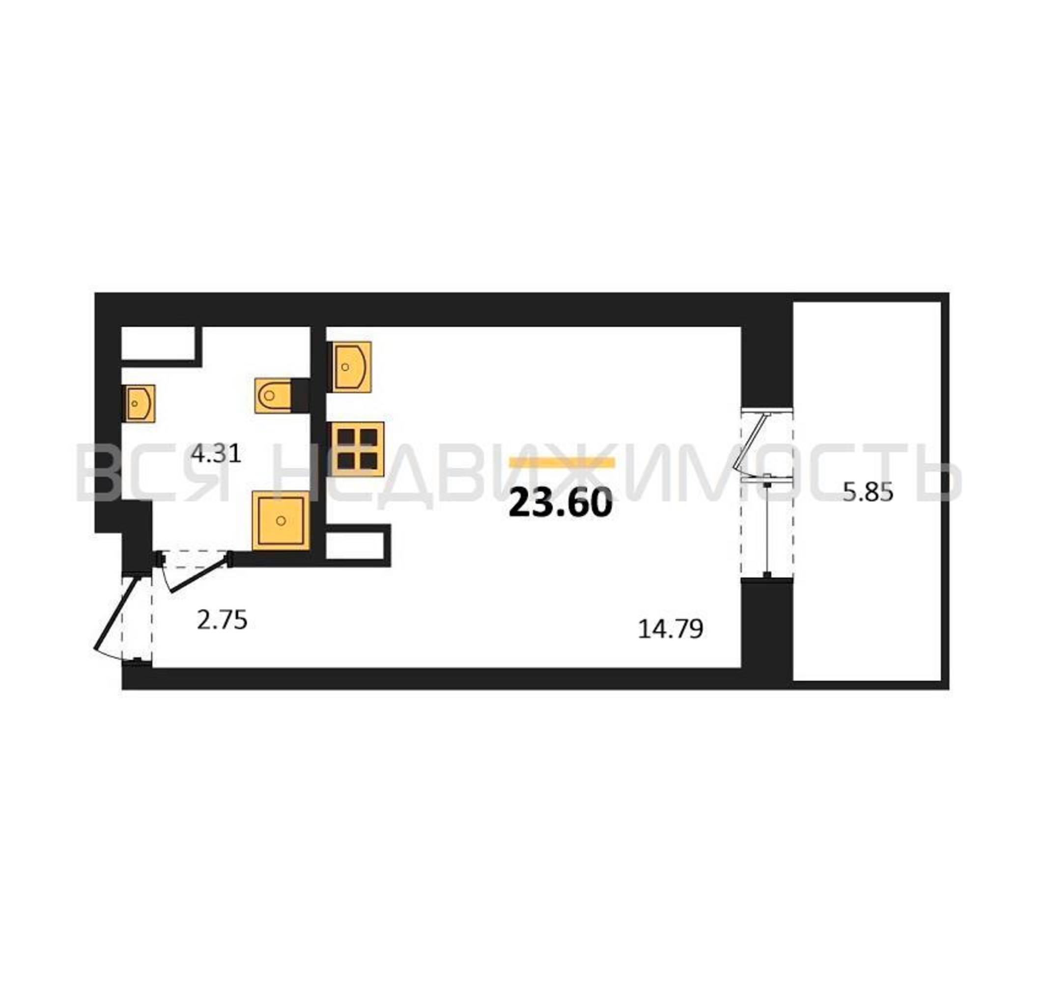 Квартиры-студии, 23.60 м² 9/28 этаж ID объекта 100108418