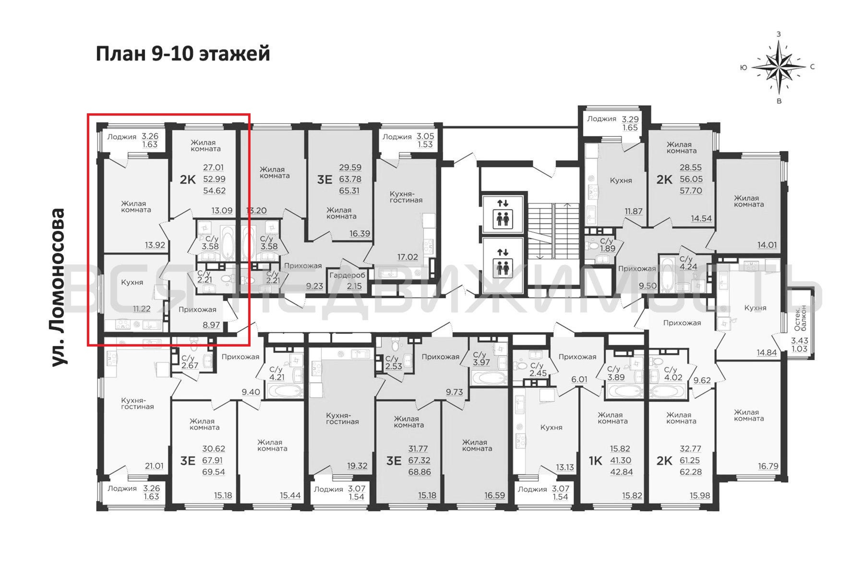 2-комнатная квартира, 54.97 м² 10/13 этаж ID объекта 100108837