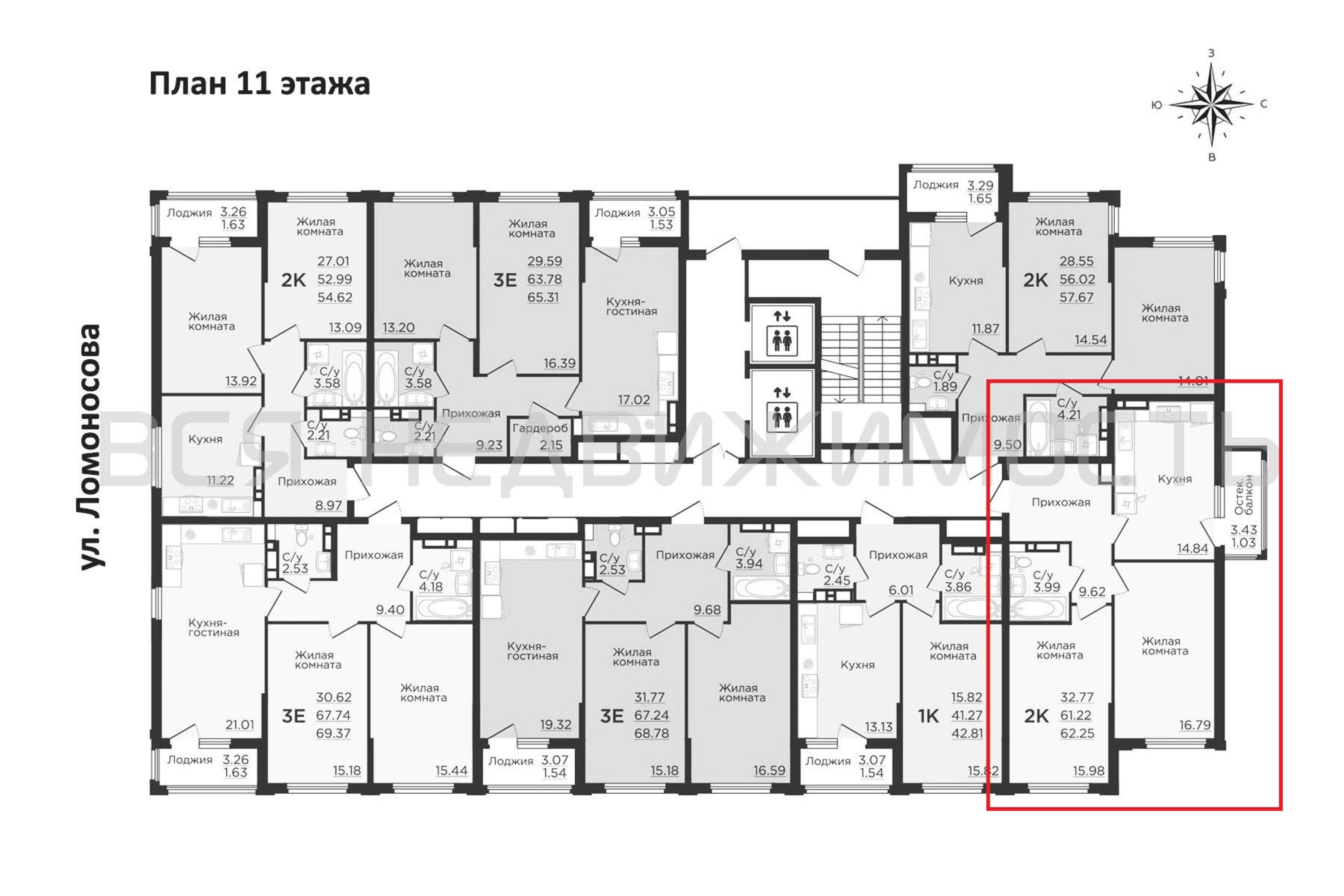 2-комнатная квартира, 62.34 м² 11/13 этаж ID объекта 100108840