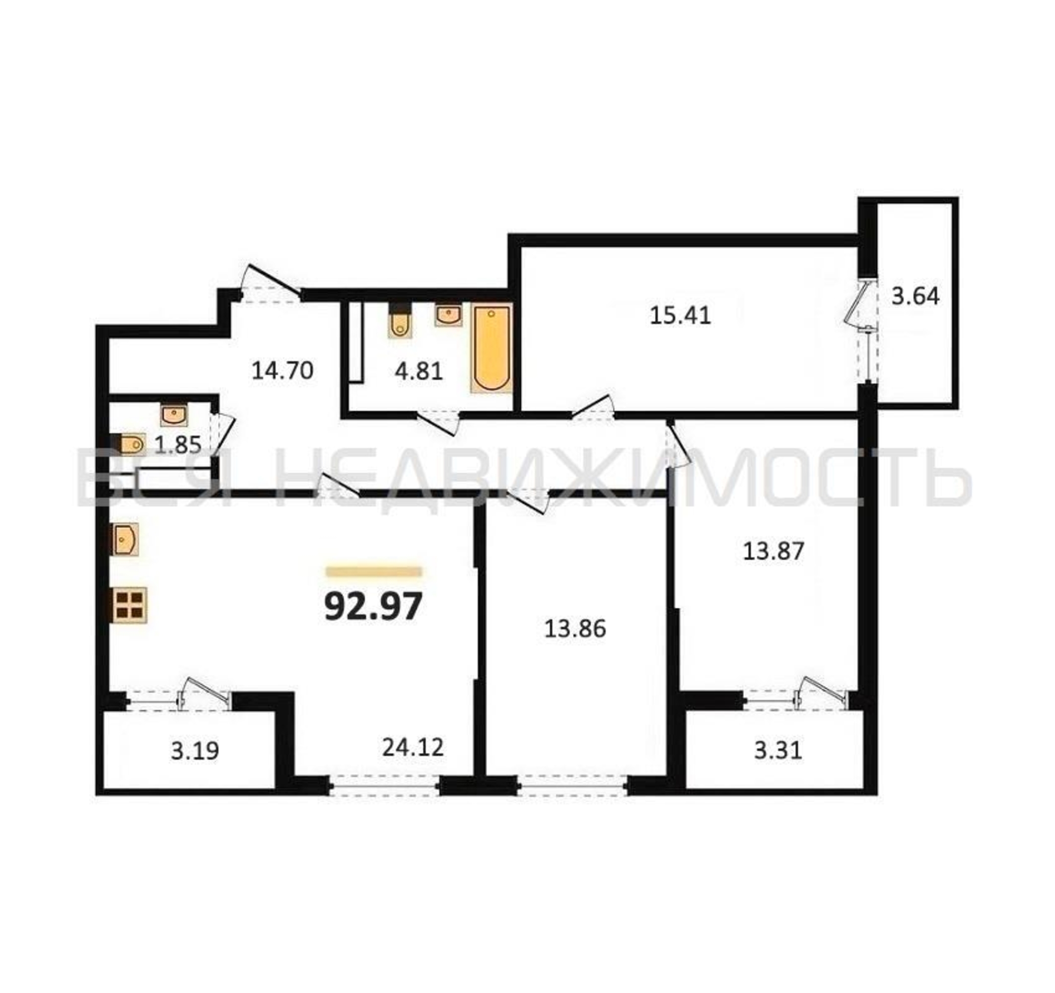 3-комнатная квартира, 92.97 м² 10/12 этаж ID объекта 100108890