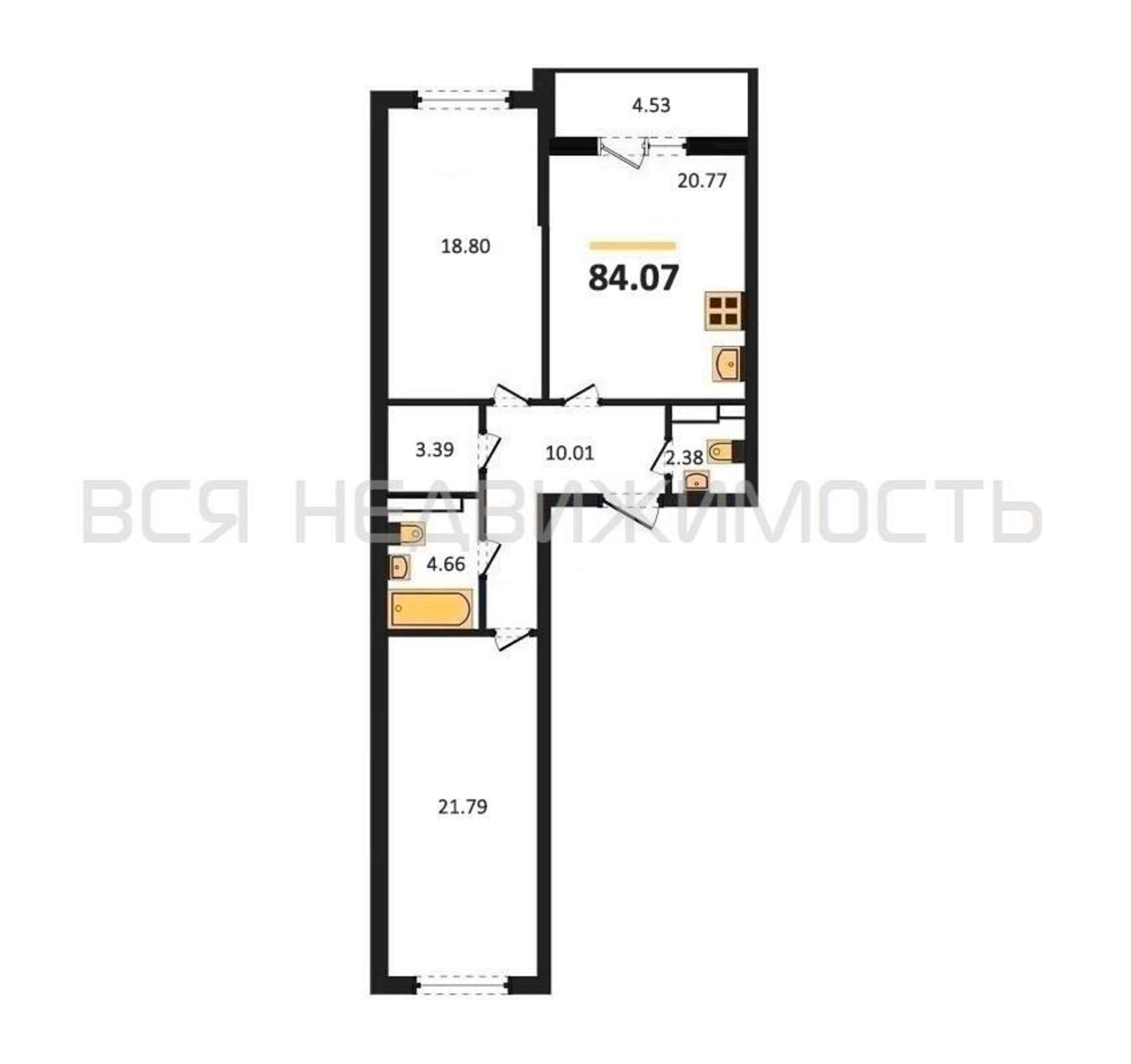 2-комнатная квартира, 84.07 м² 11/12 этаж ID объекта 100108896