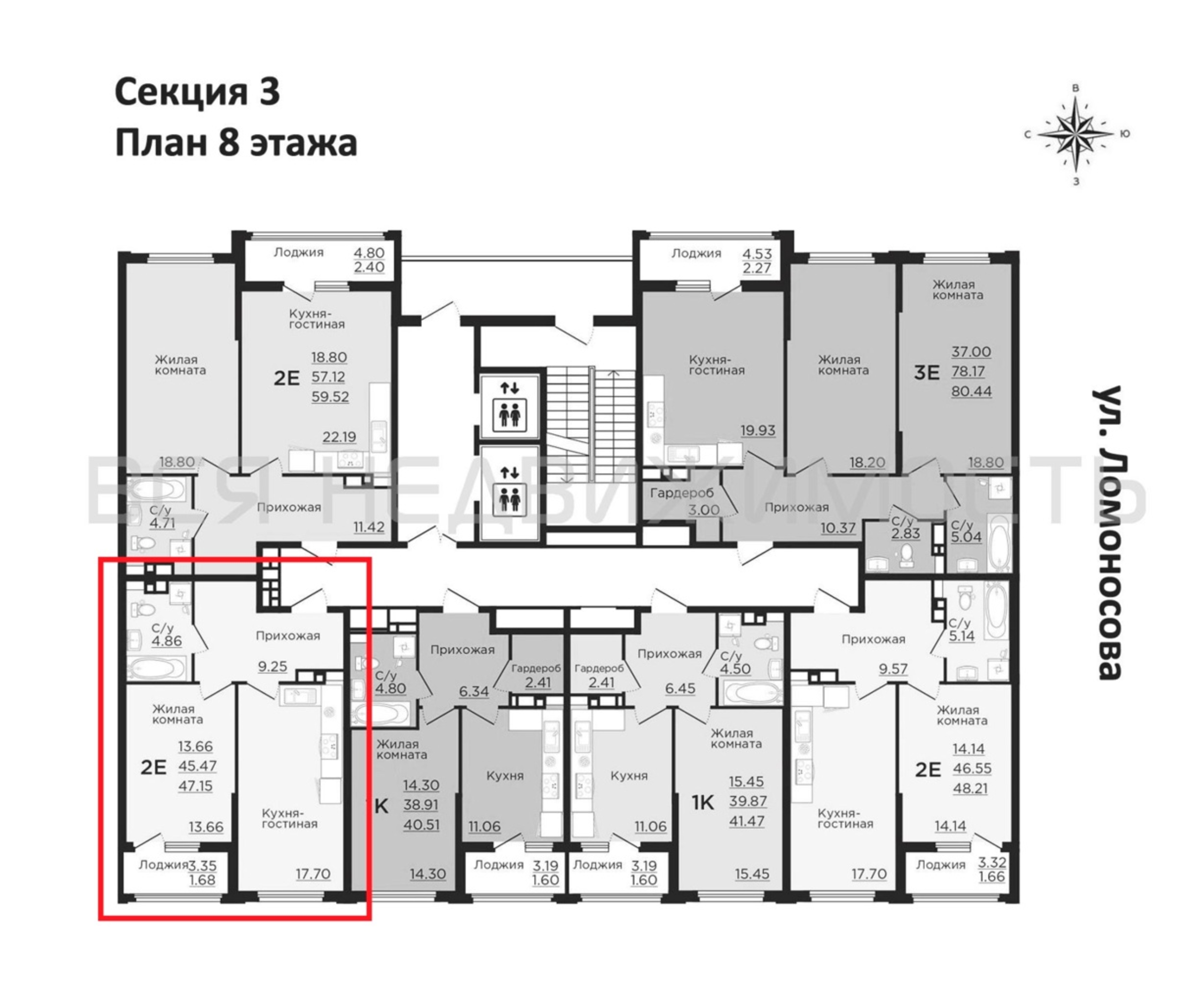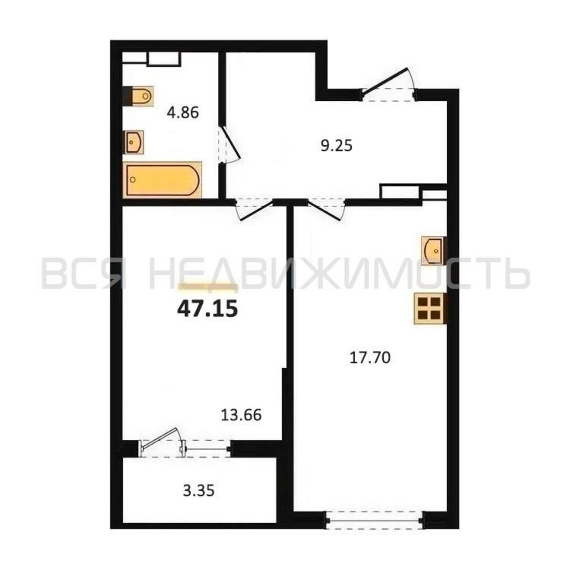 1-комнатная квартира, 47.15 м² 8/18 этаж ID объекта 100108943