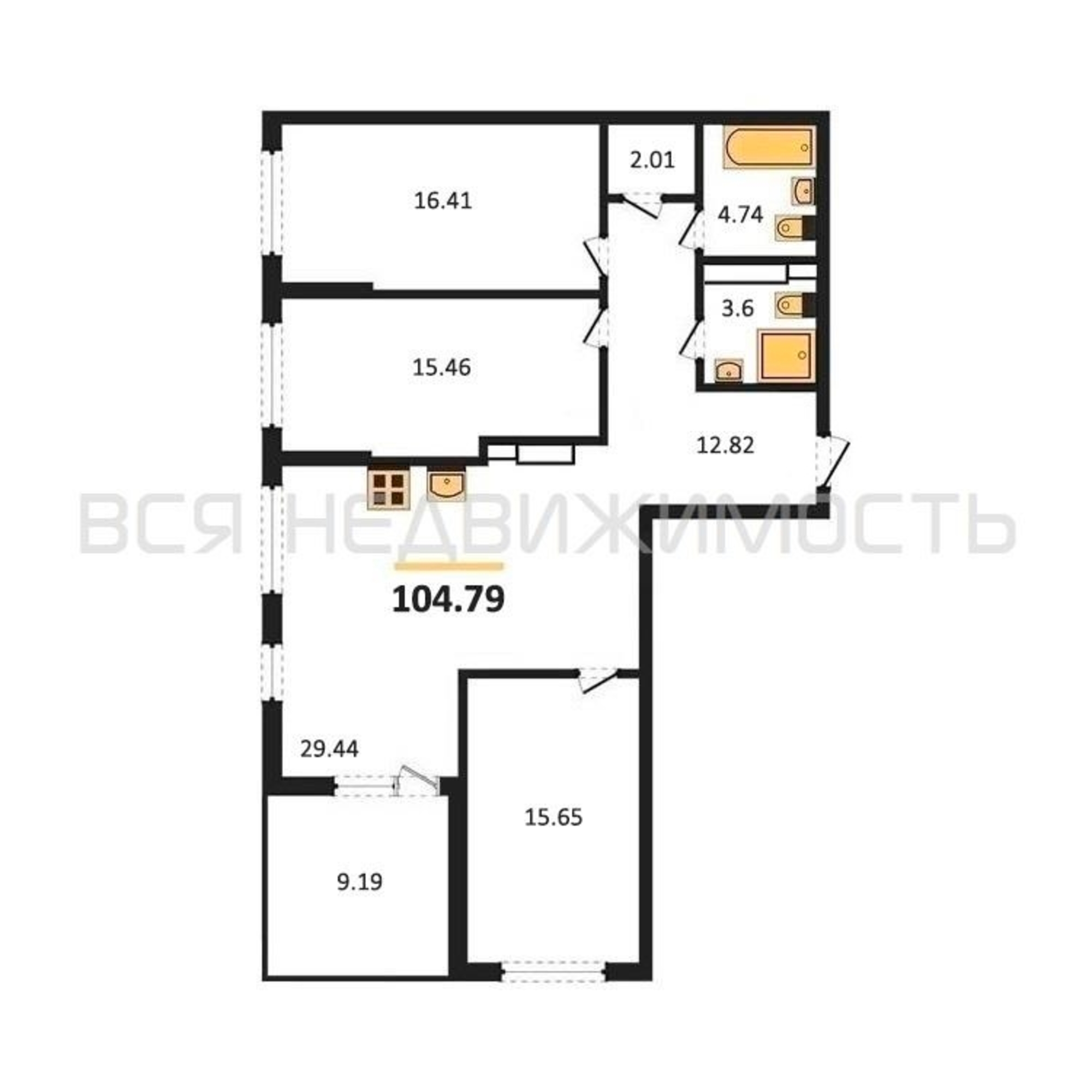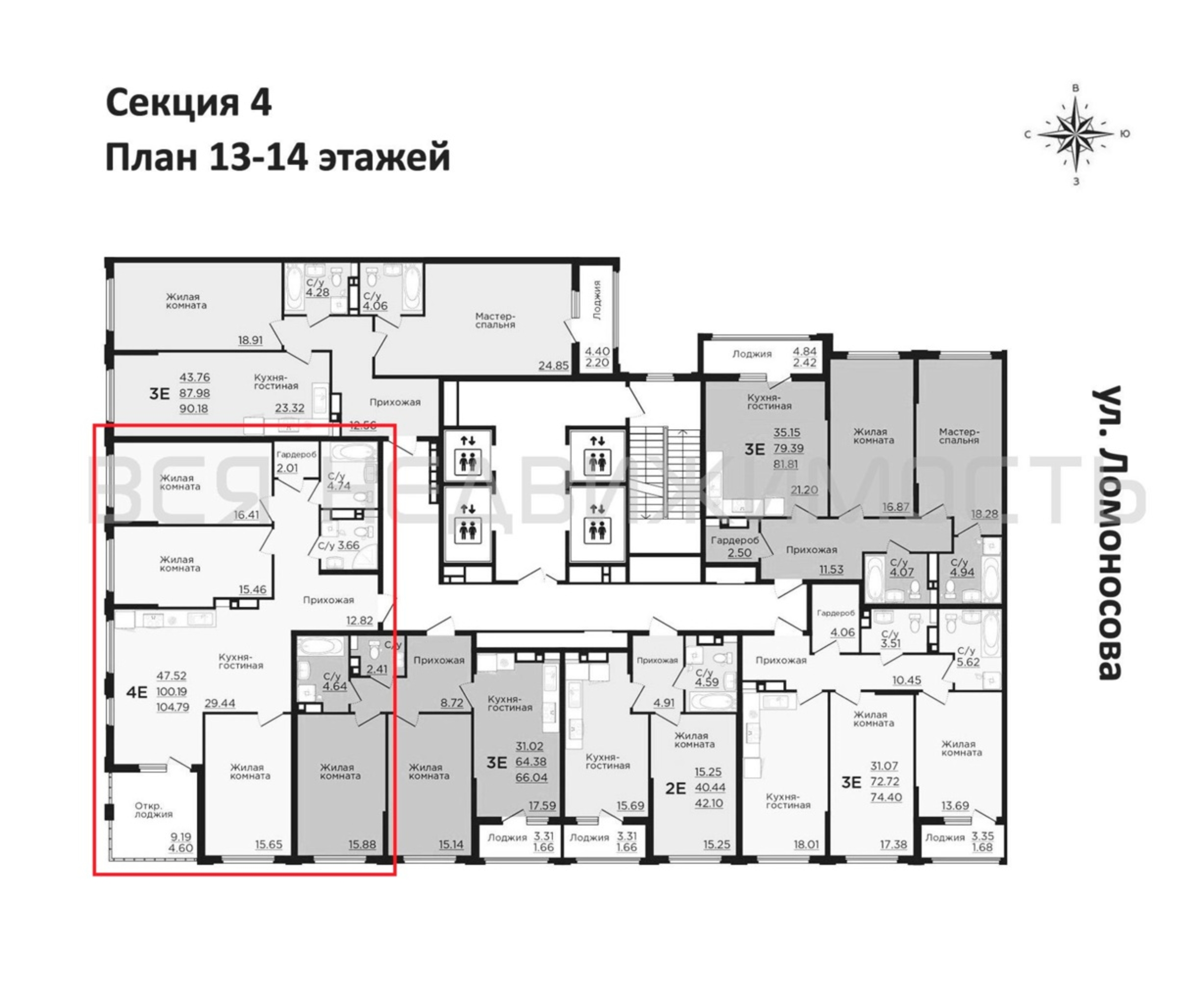 3-комнатная квартира, 104.79 м² 13/22 этаж ID объекта 100109073