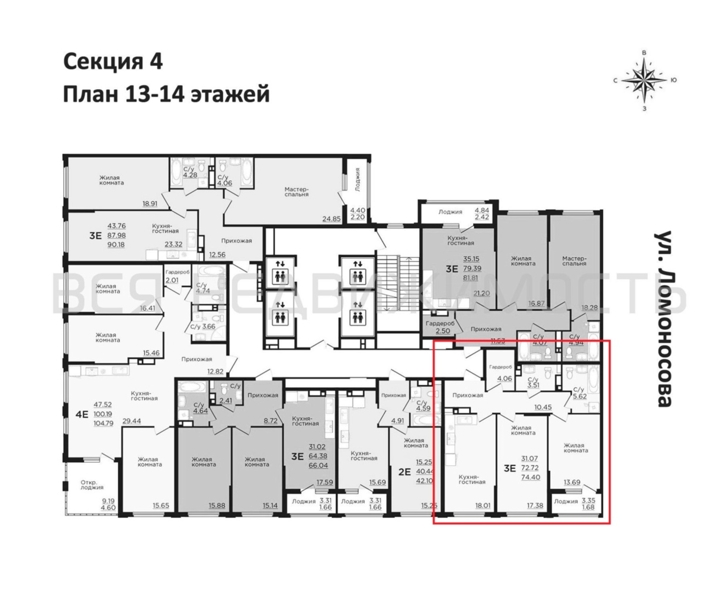 2-комнатная квартира, 74.40 м² 14/22 этаж ID объекта 100109076