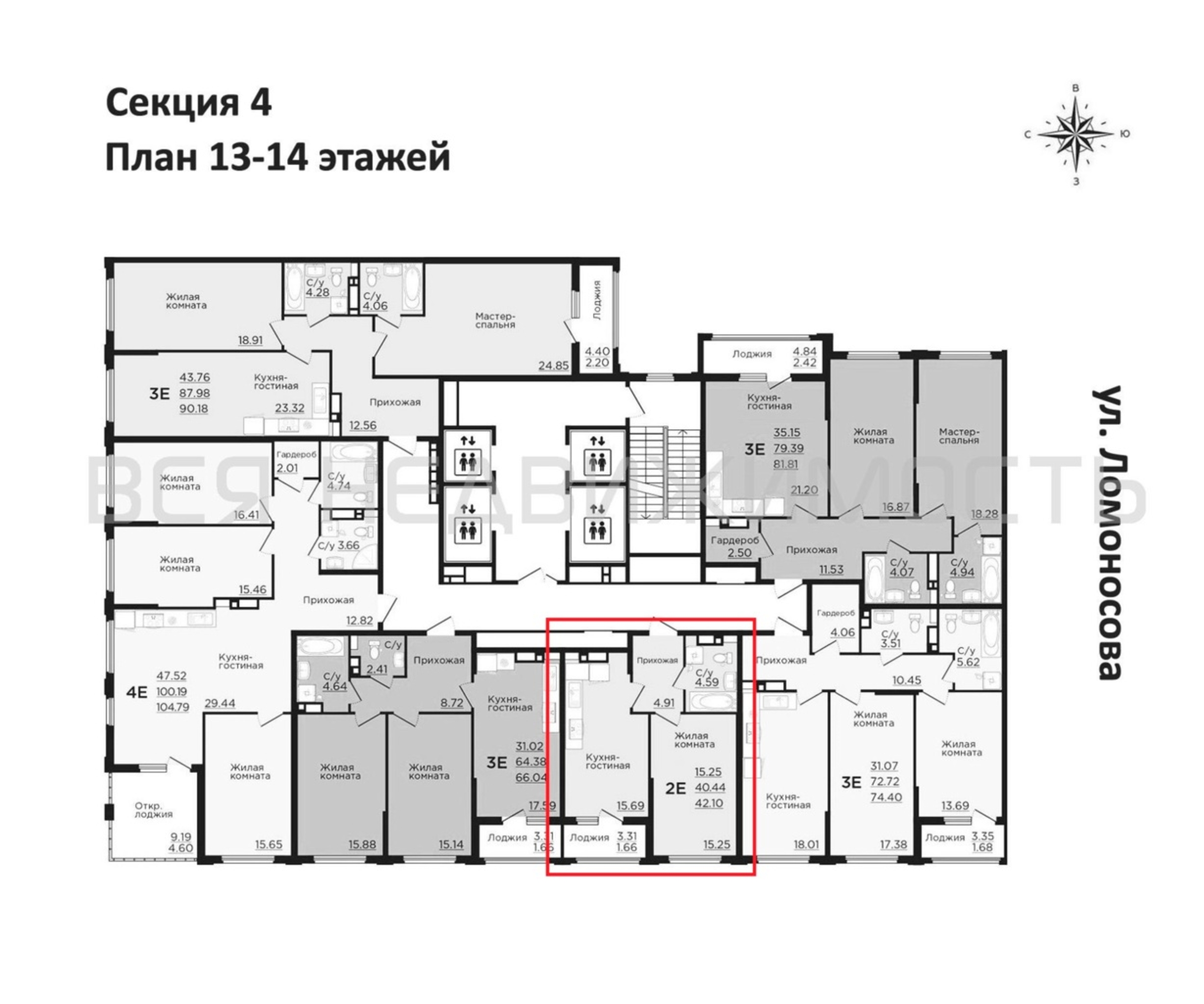 1-комнатная квартира, 42.10 м² 14/22 этаж ID объекта 100109077