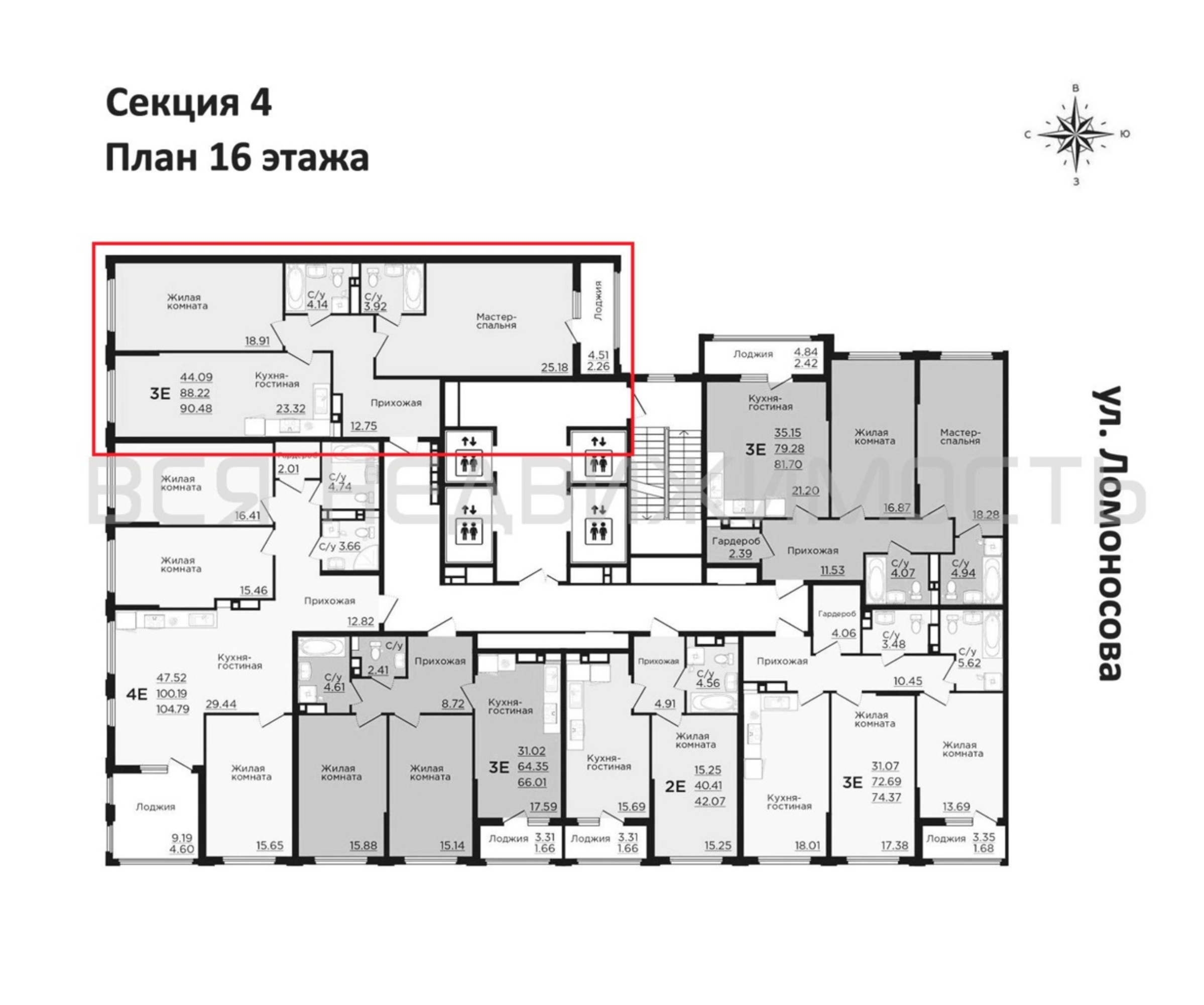 2-комнатная квартира, 90.48 м² 16/22 этаж ID объекта 100109092