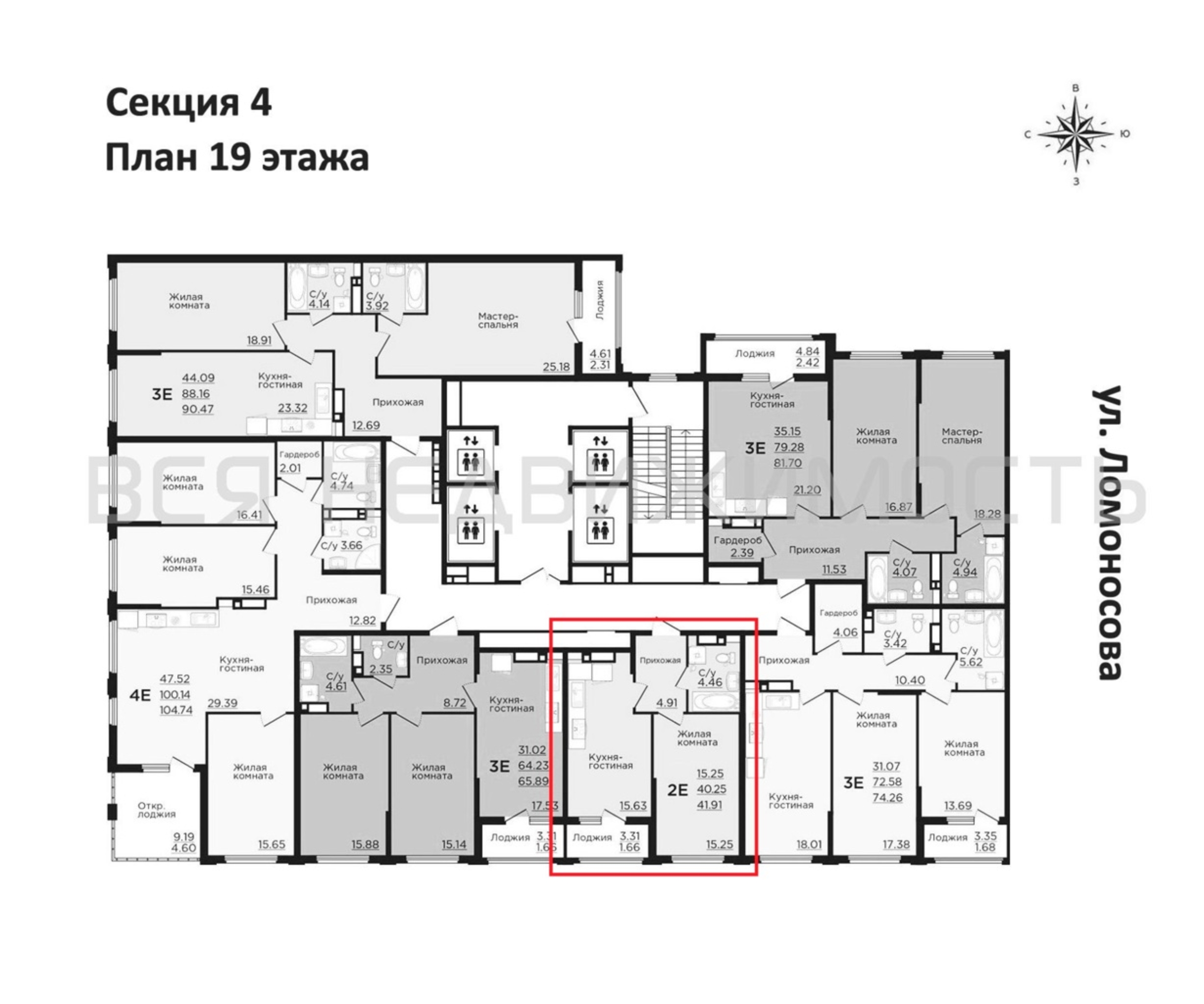 1-комнатная квартира, 41.91 м² 19/22 этаж ID объекта 100109107