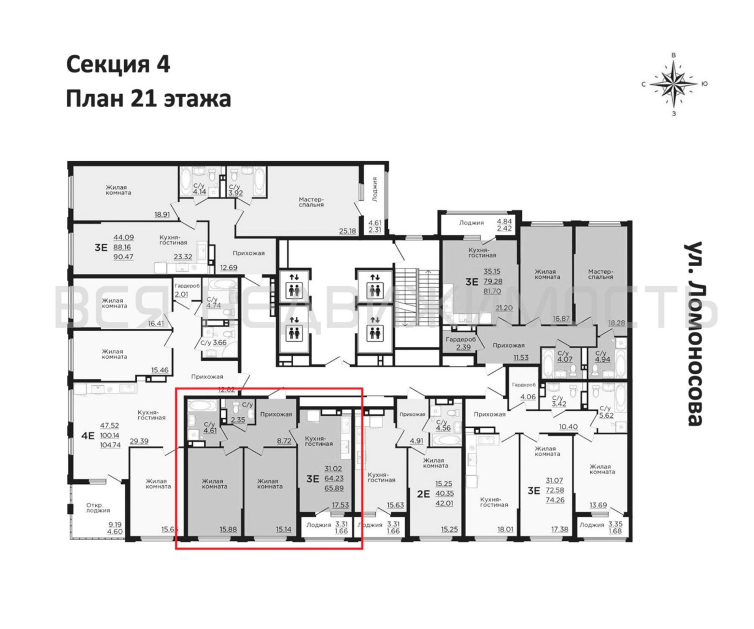 2-комнатная квартира, 65.89 м² 21/22 этаж ID объекта 100109120