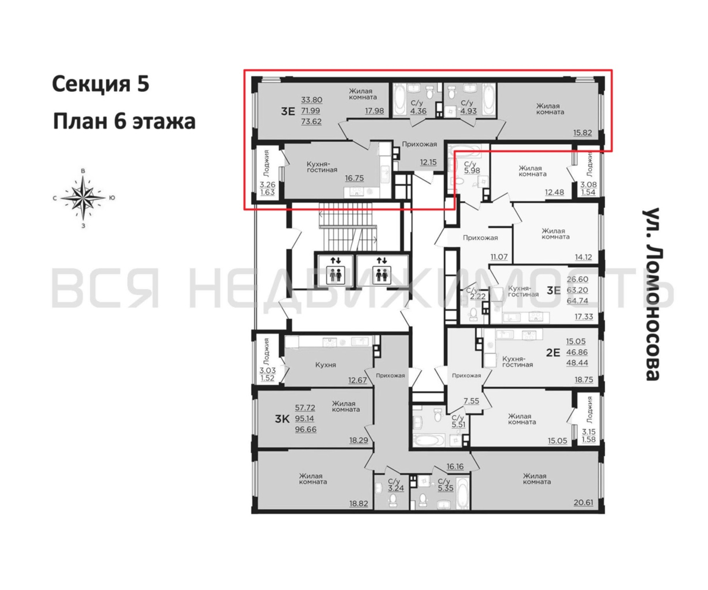 2-комнатная квартира, 73.62 м² 6/15 этаж ID объекта 100109144