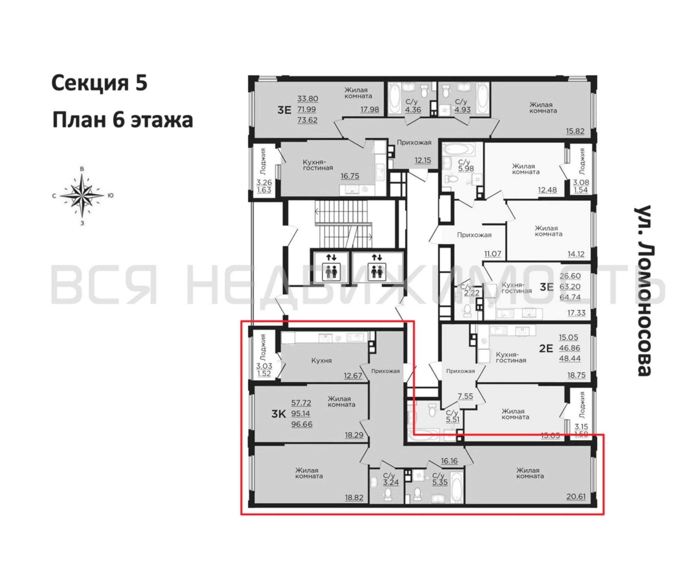 3-комнатная квартира, 96.66 м² 6/15 этаж ID объекта 100109147