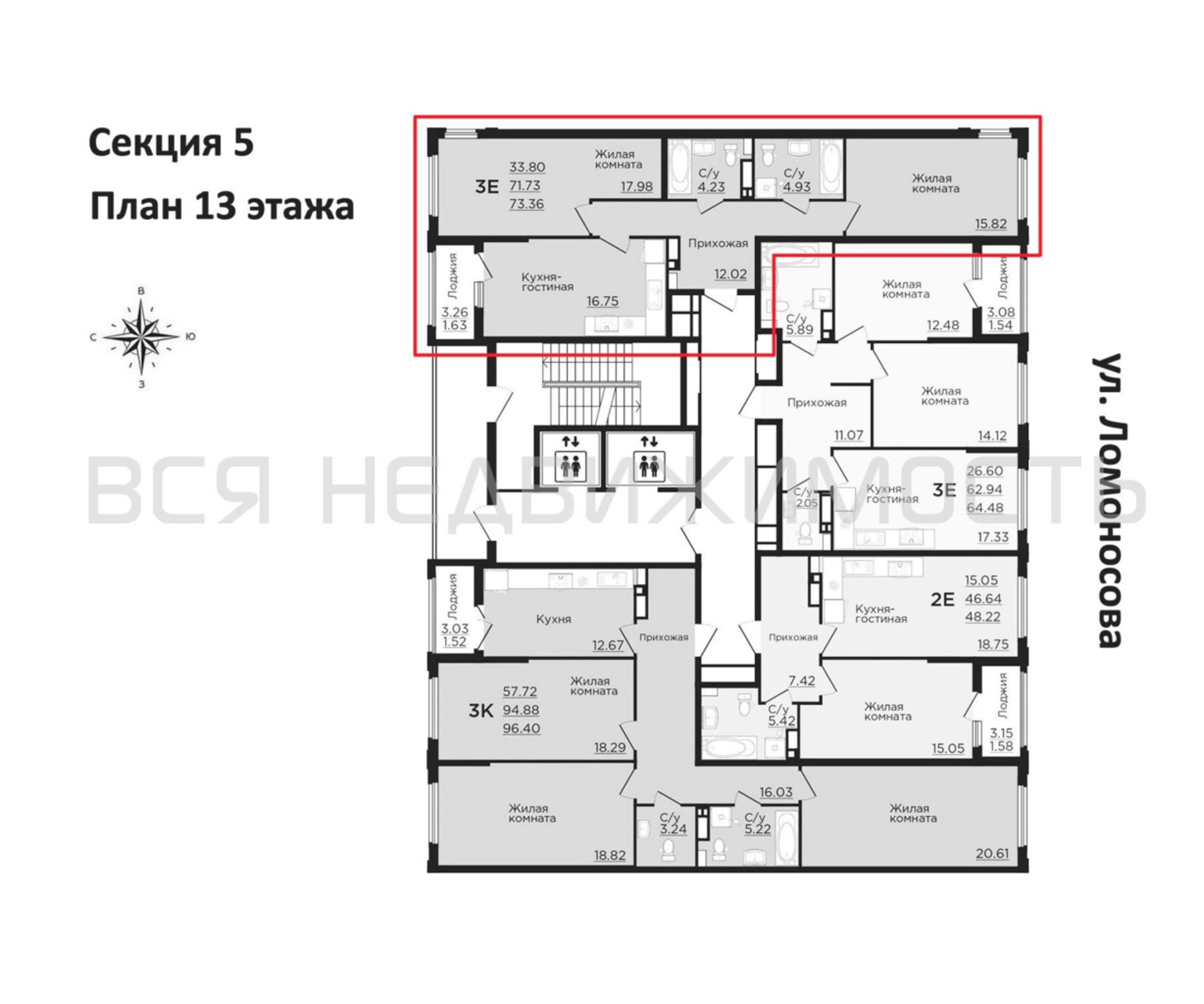 2-комнатная квартира, 73.36 м² 13/15 этаж ID объекта 100109172