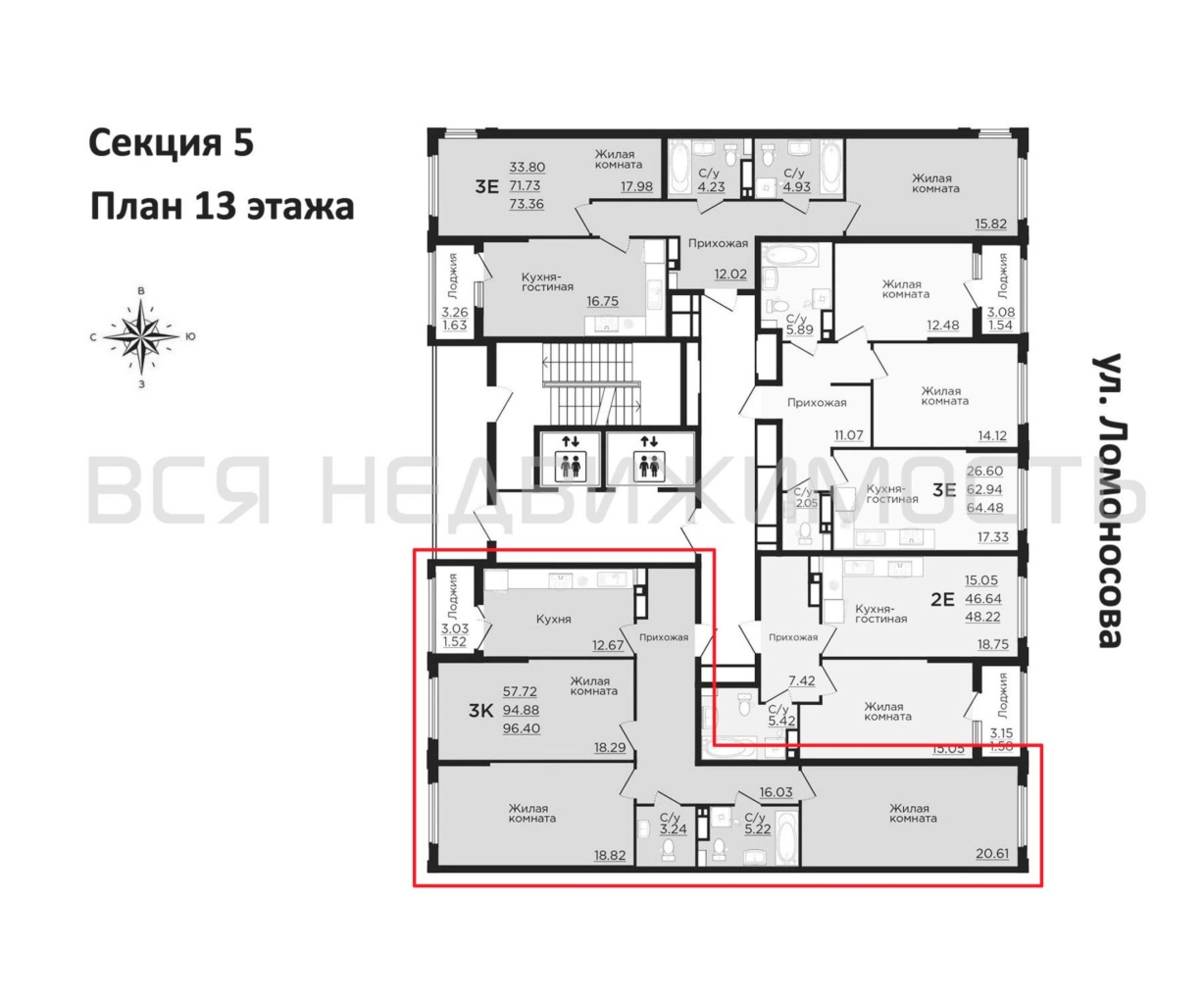 3-комнатная квартира, 96.40 м² 13/15 этаж ID объекта 100109175