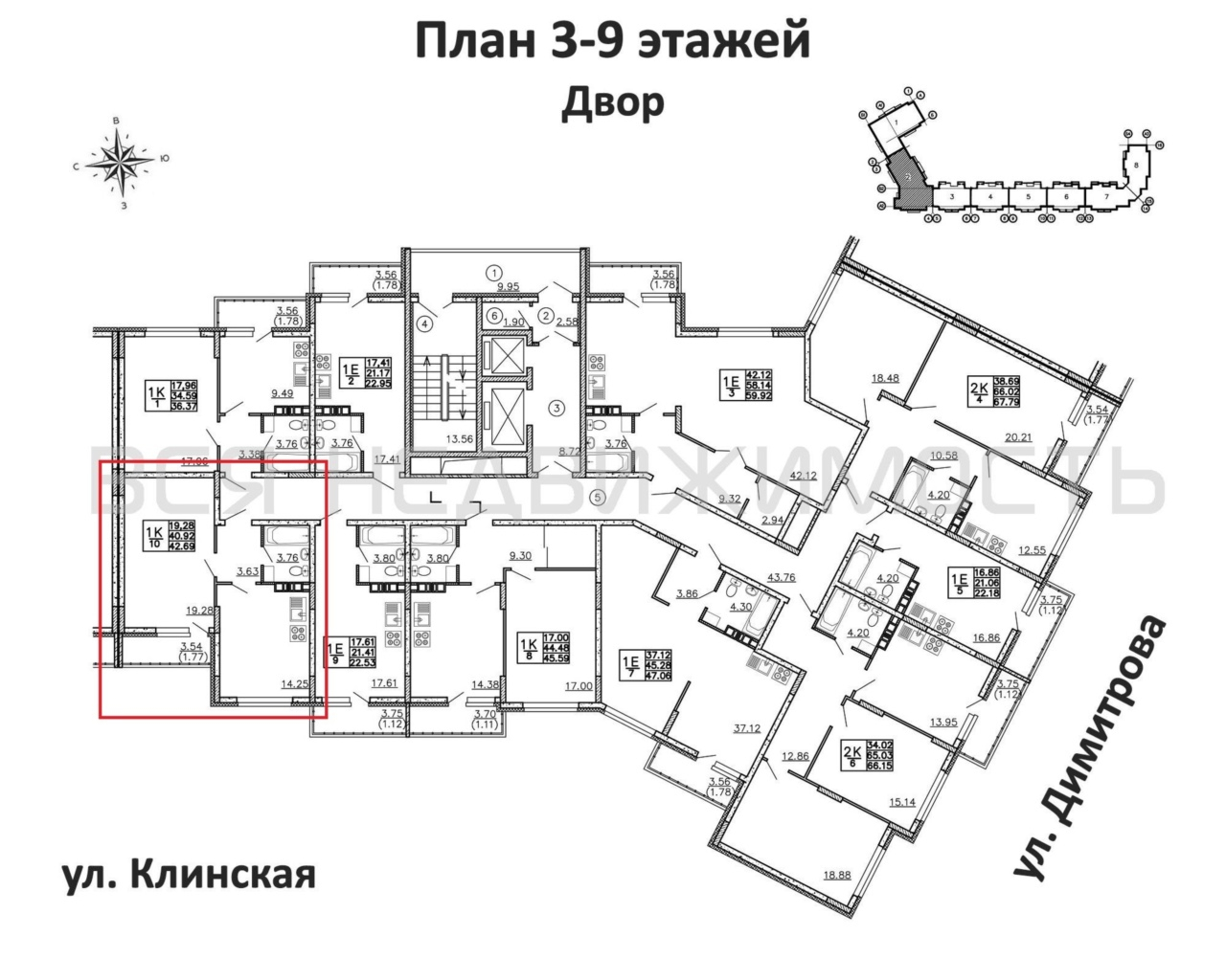 1-комнатная квартира, 42.69 м² 3/14 этаж ID объекта 100110105
