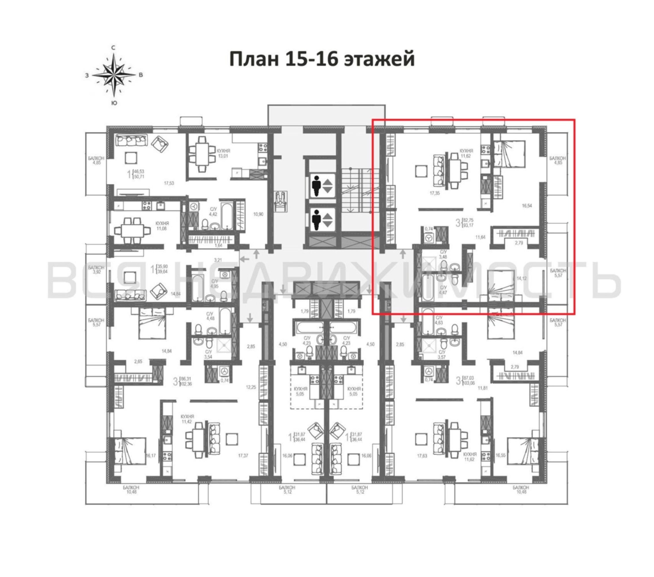 2-комнатная квартира, 93.17 м² 15/16 этаж ID объекта 100110759