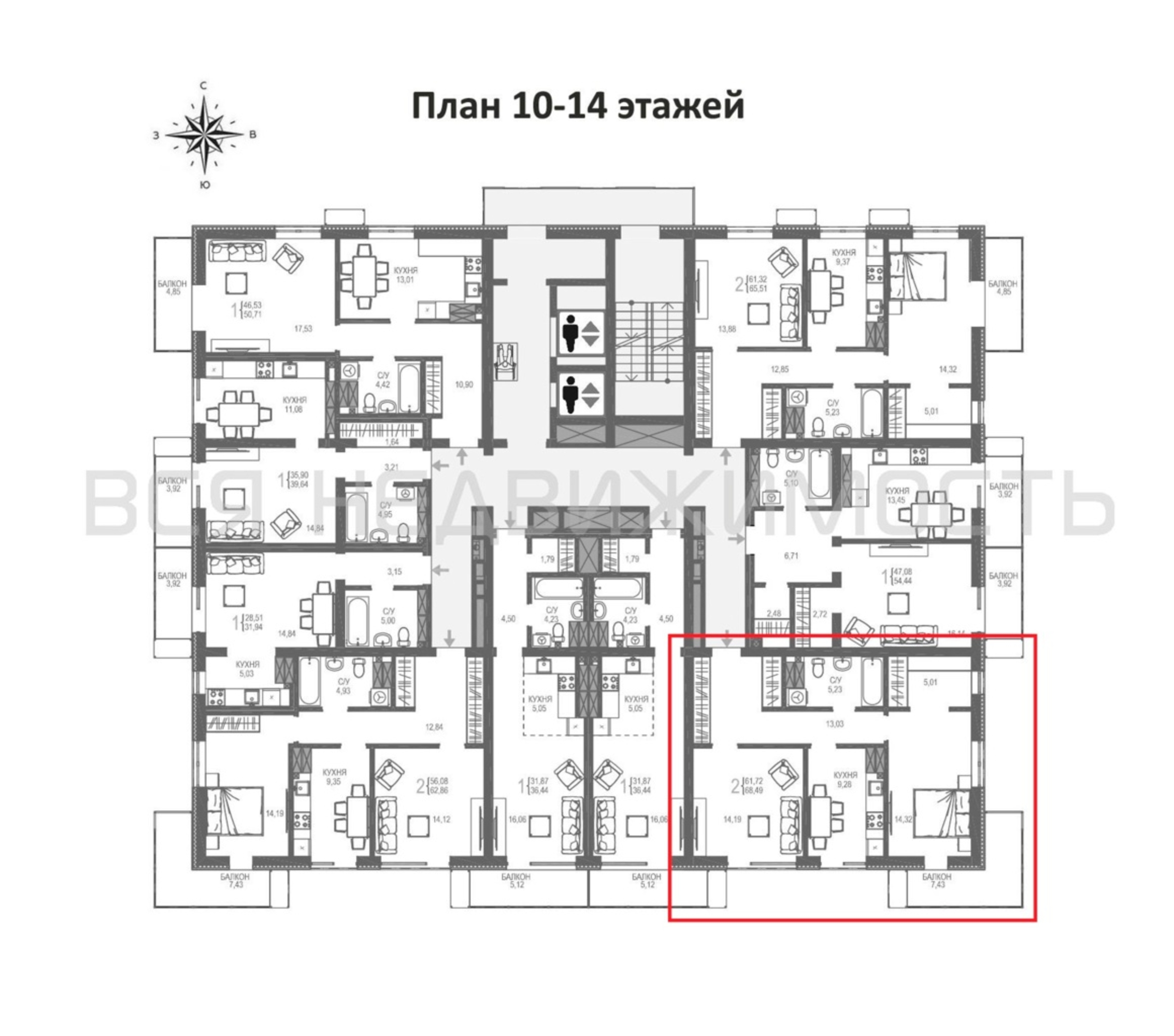 2-комнатная квартира, 68.49 м² 14/16 этаж ID объекта 100110883