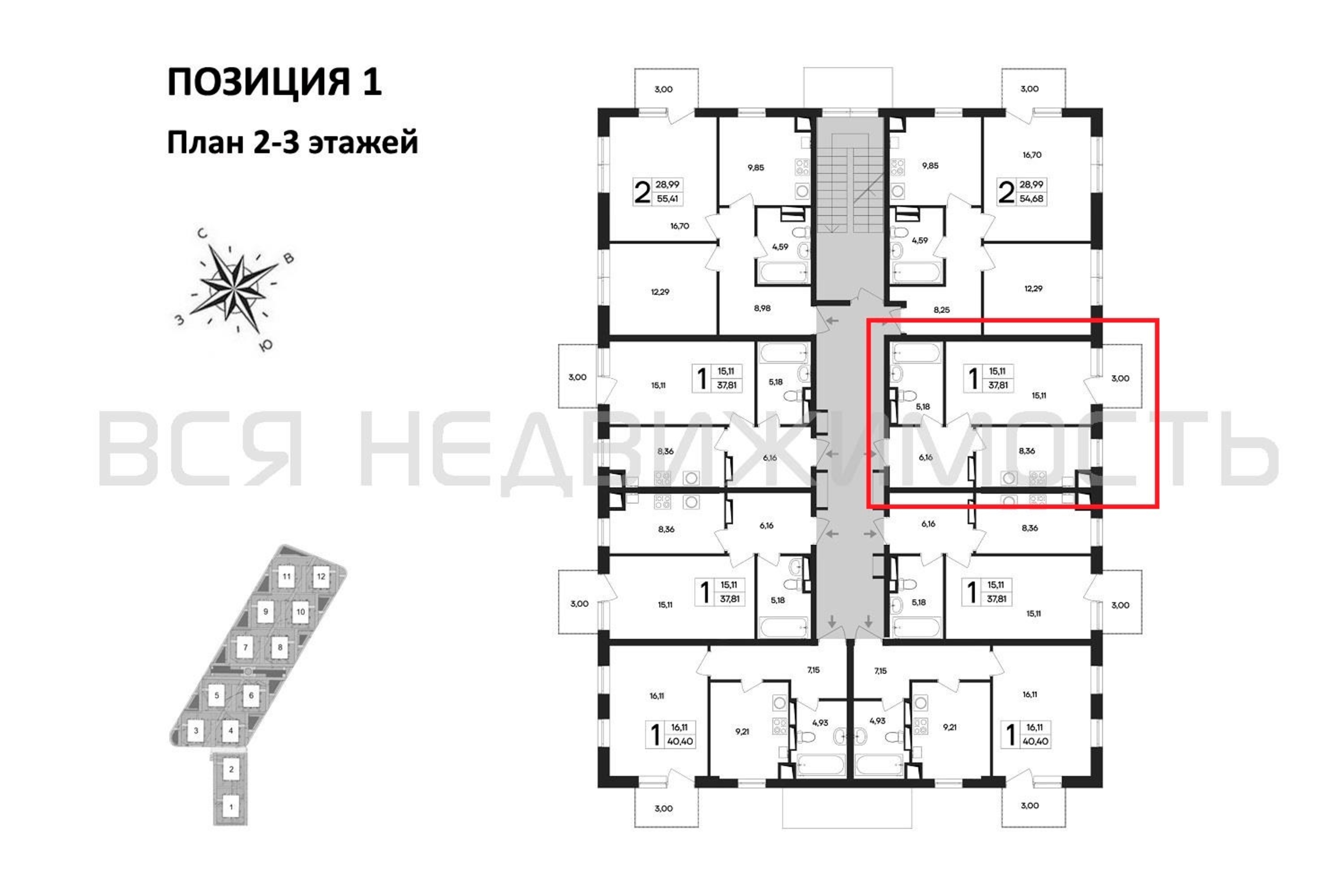1-комнатная квартира, 37.81 м² 3/4 этаж ID объекта 100111583