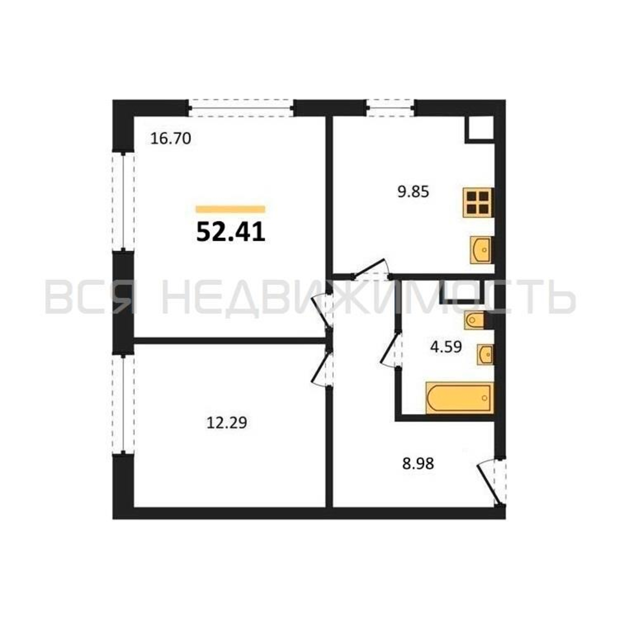 2-комнатная квартира, 52.41 м² 2/4 этаж ID объекта 100111611