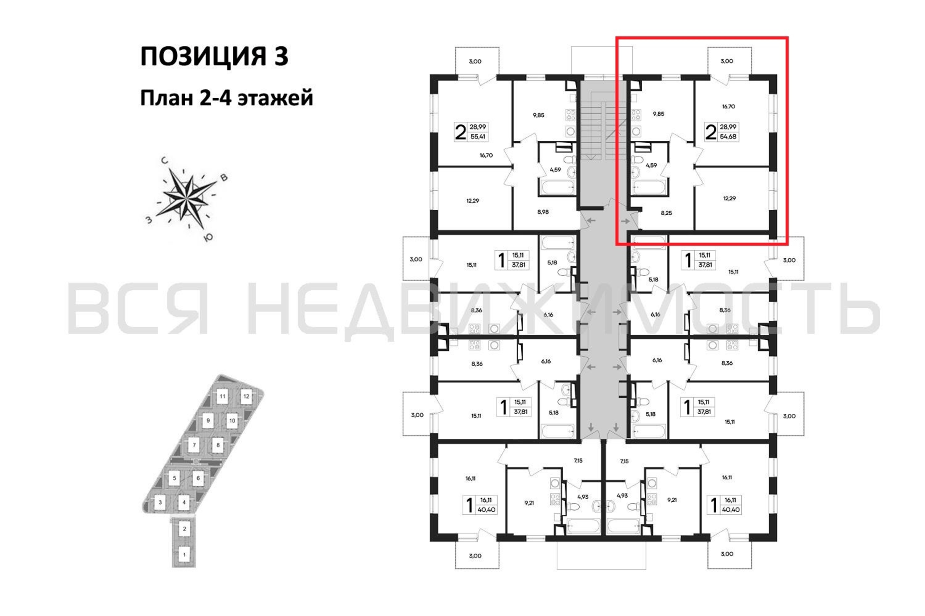 2-комнатная квартира, 54.68 м² 4/4 этаж ID объекта 100111651