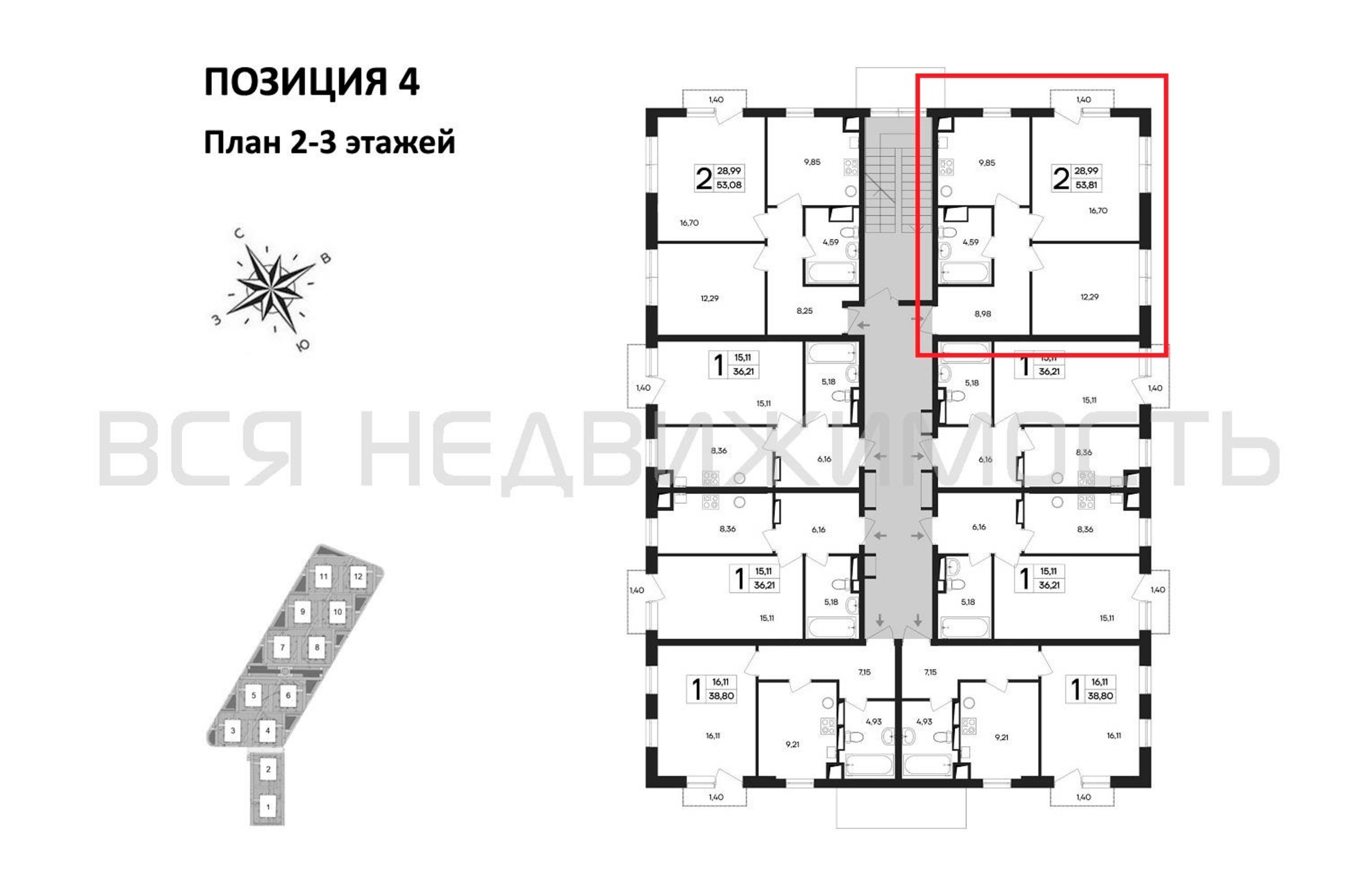 2-комнатная квартира, 53.81 м² 2/4 этаж ID объекта 100111666