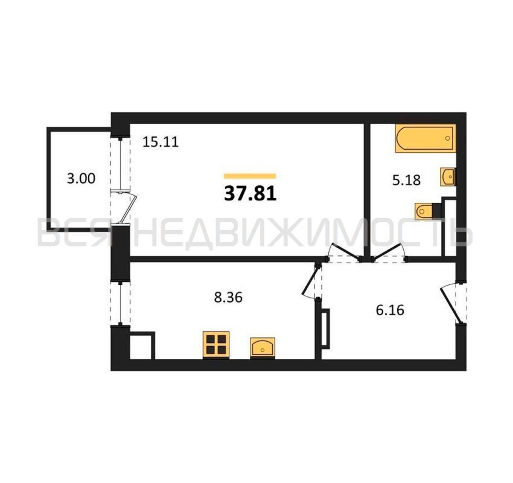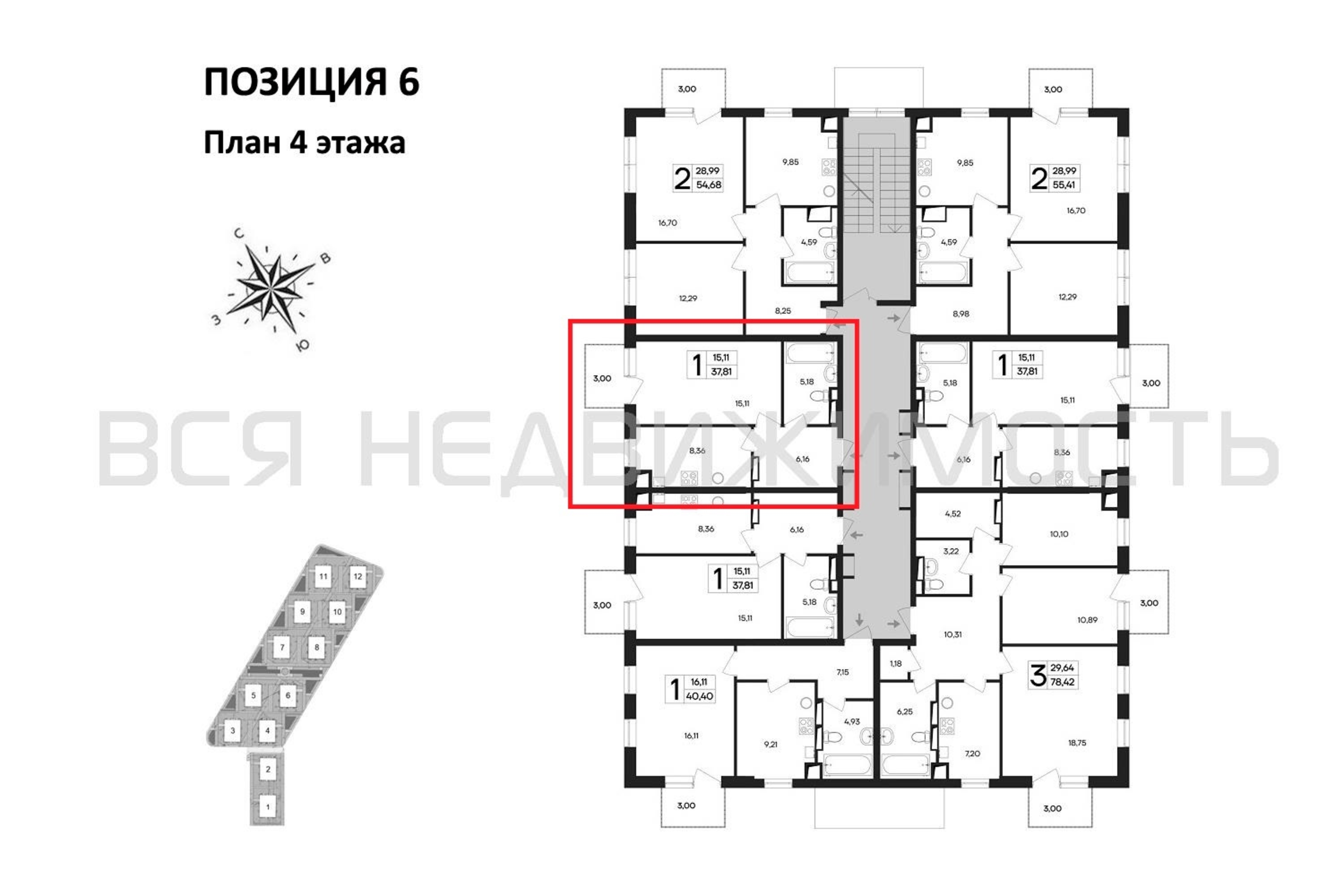 1-комнатная квартира, 37.81 м² 4/4 этаж ID объекта 100111748