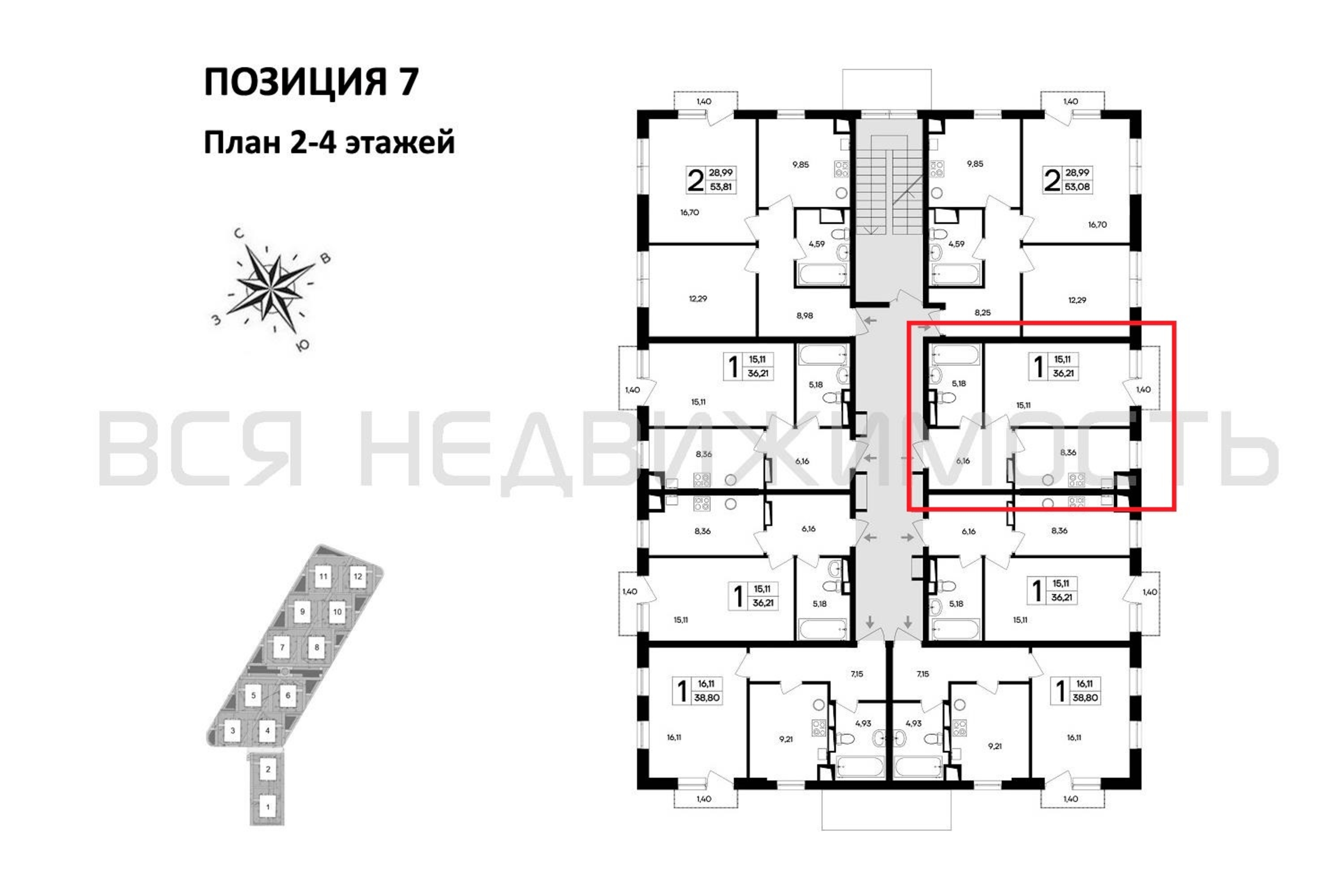 1-комнатная квартира, 36.21 м² 3/4 этаж ID объекта 100111766