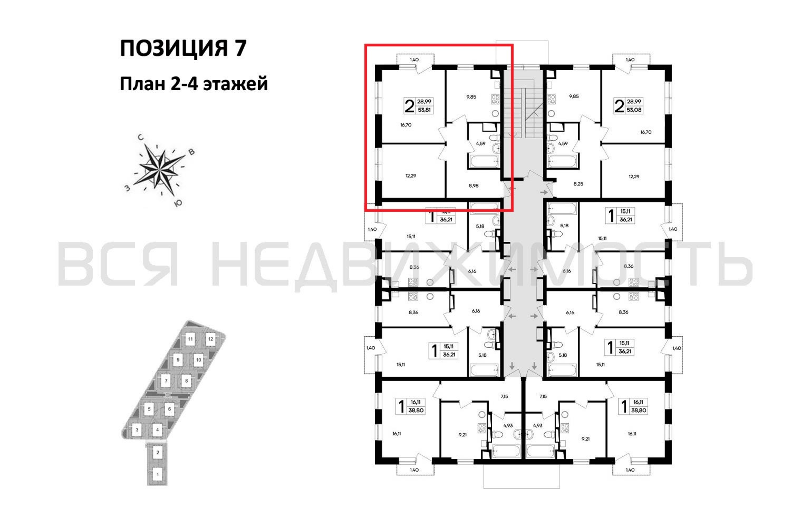 2-комнатная квартира, 53.81 м² 4/4 этаж ID объекта 100111780