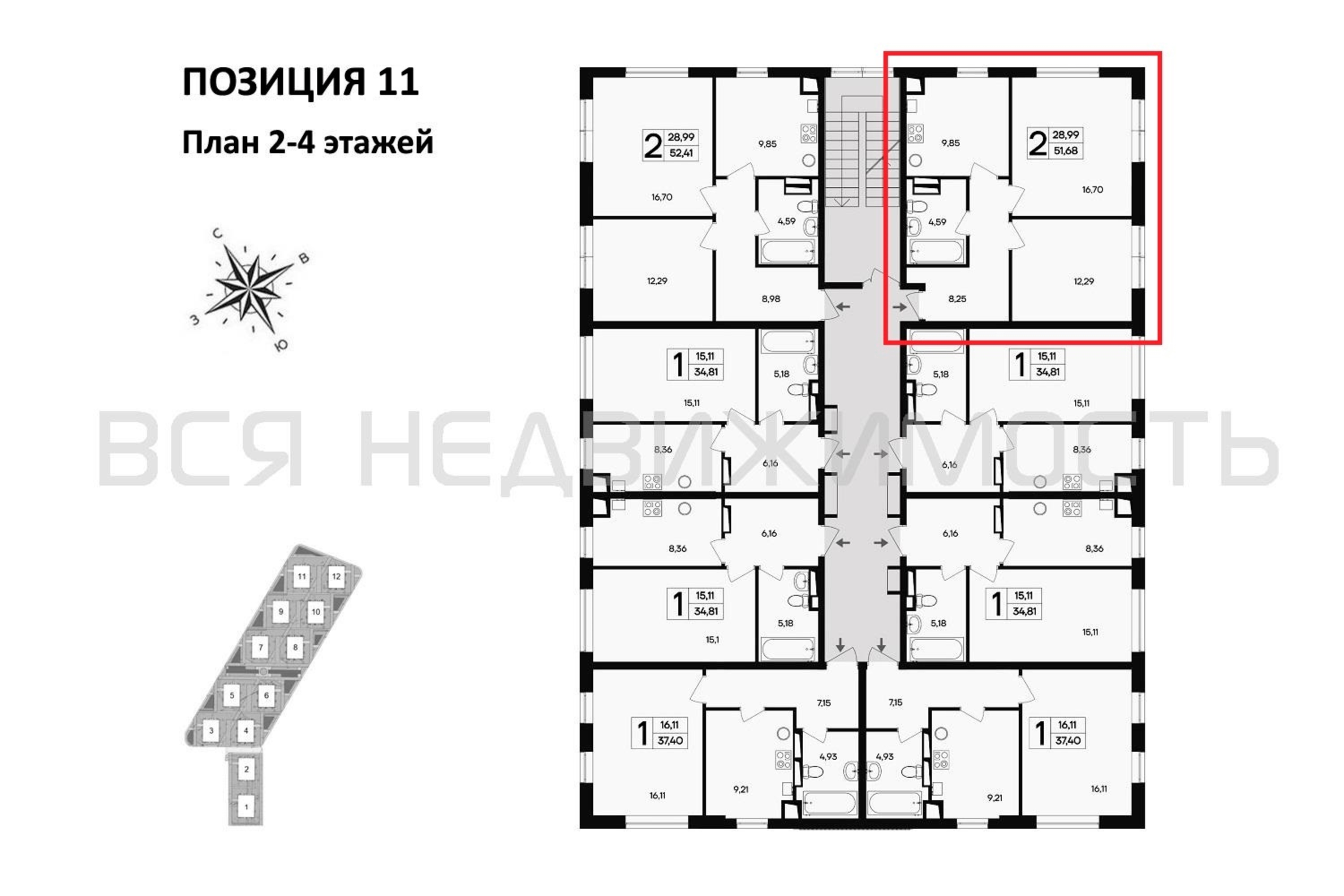 2-комнатная квартира, 51.68 м² 2/4 этаж ID объекта 100111881