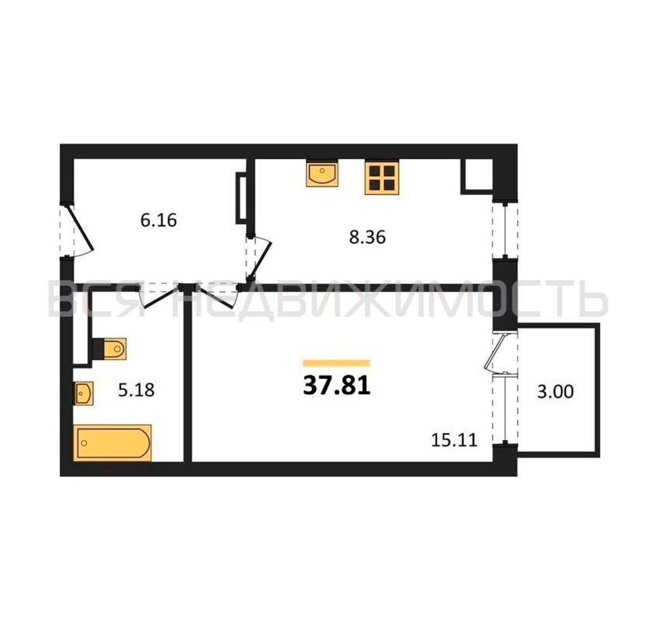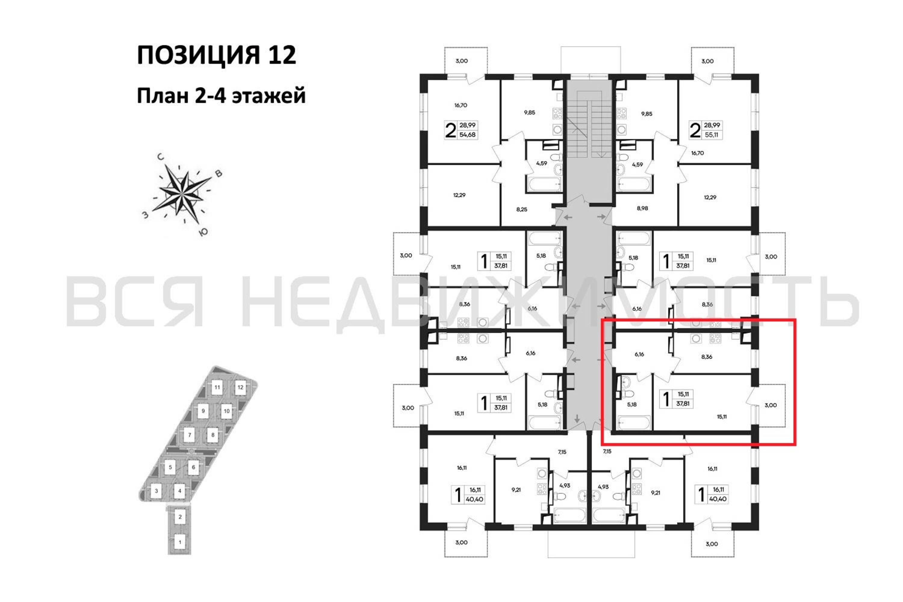 1-комнатная квартира, 37.81 м² 4/4 этаж ID объекта 100111930