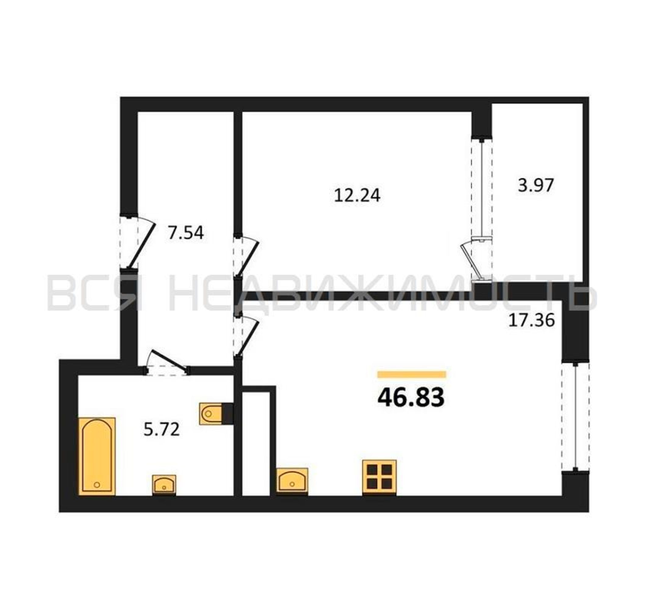 1-комнатная квартира, 46.83 м² 2/4 этаж ID объекта 100113016