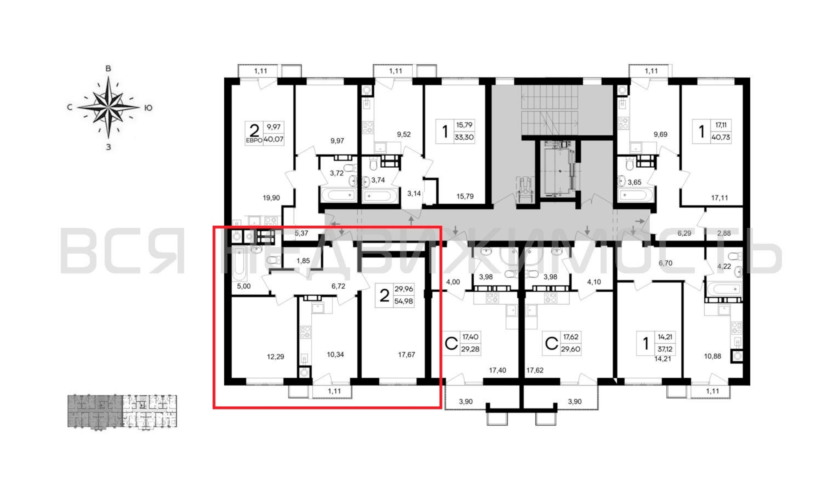 2-комнатная квартира, 54.98 м² 4/8 этаж ID объекта 100113225