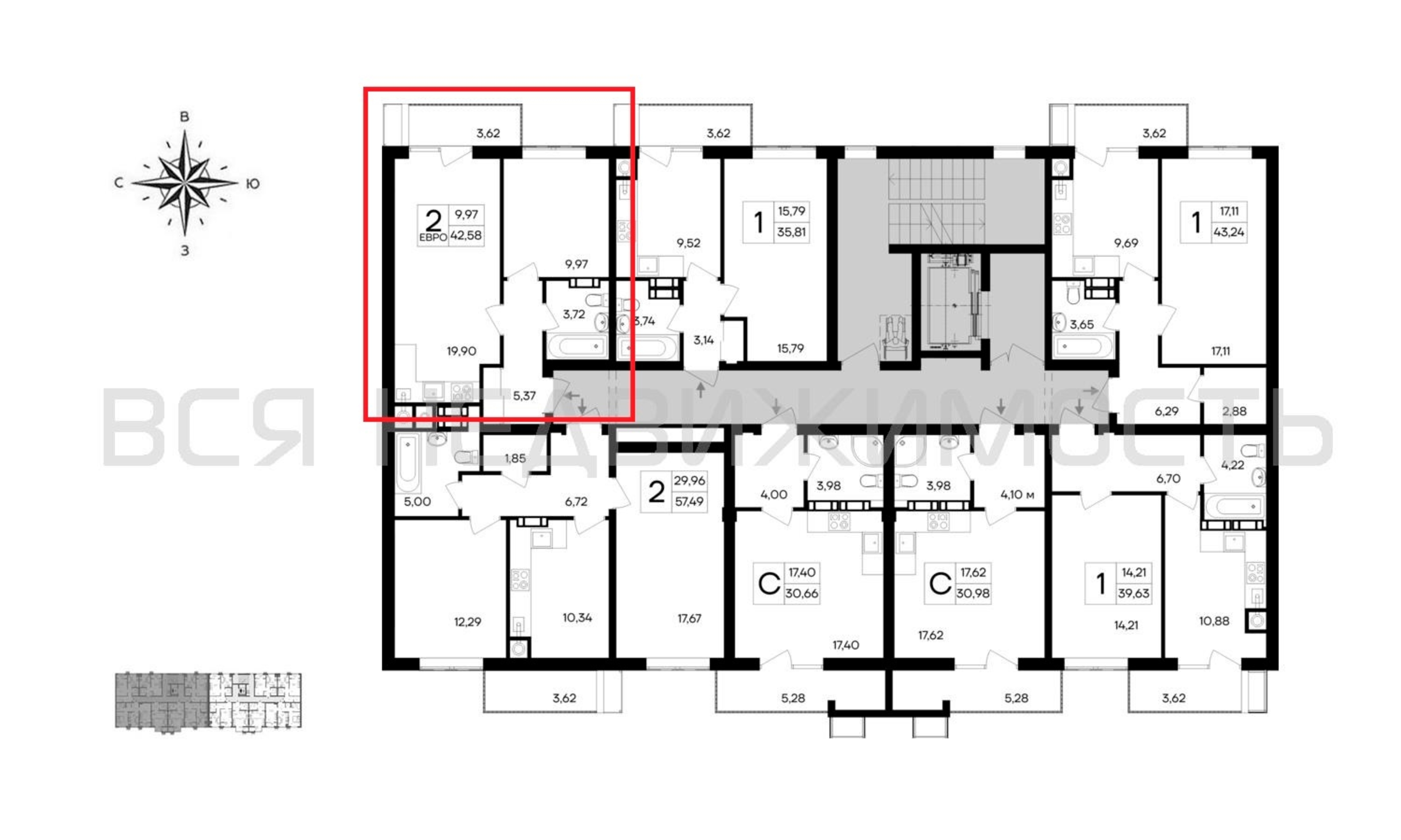 1-комнатная квартира, 42.58 м² 6/8 этаж ID объекта 100113240
