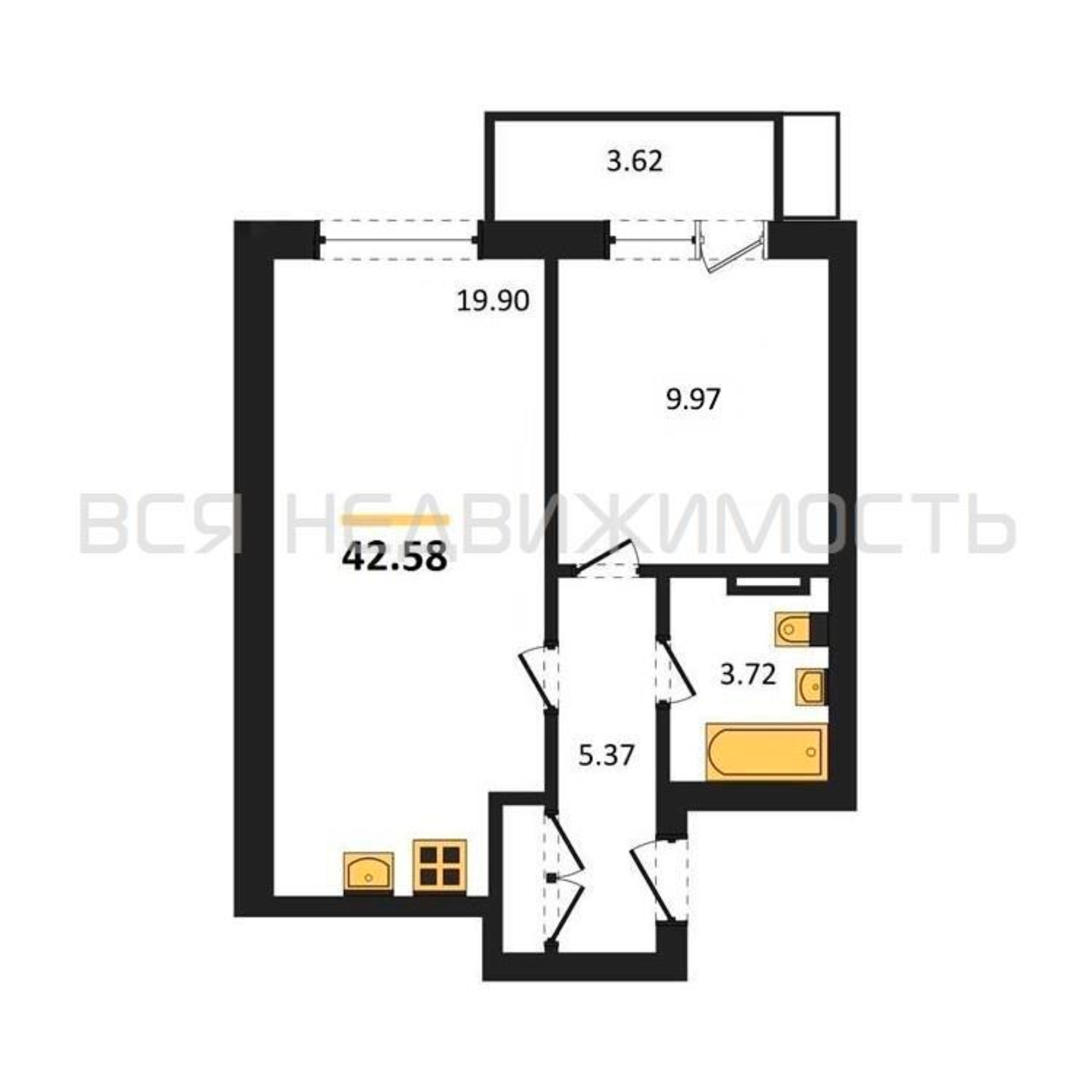 1-комнатная квартира, 42.58 м² 7/8 этаж ID объекта 100113247