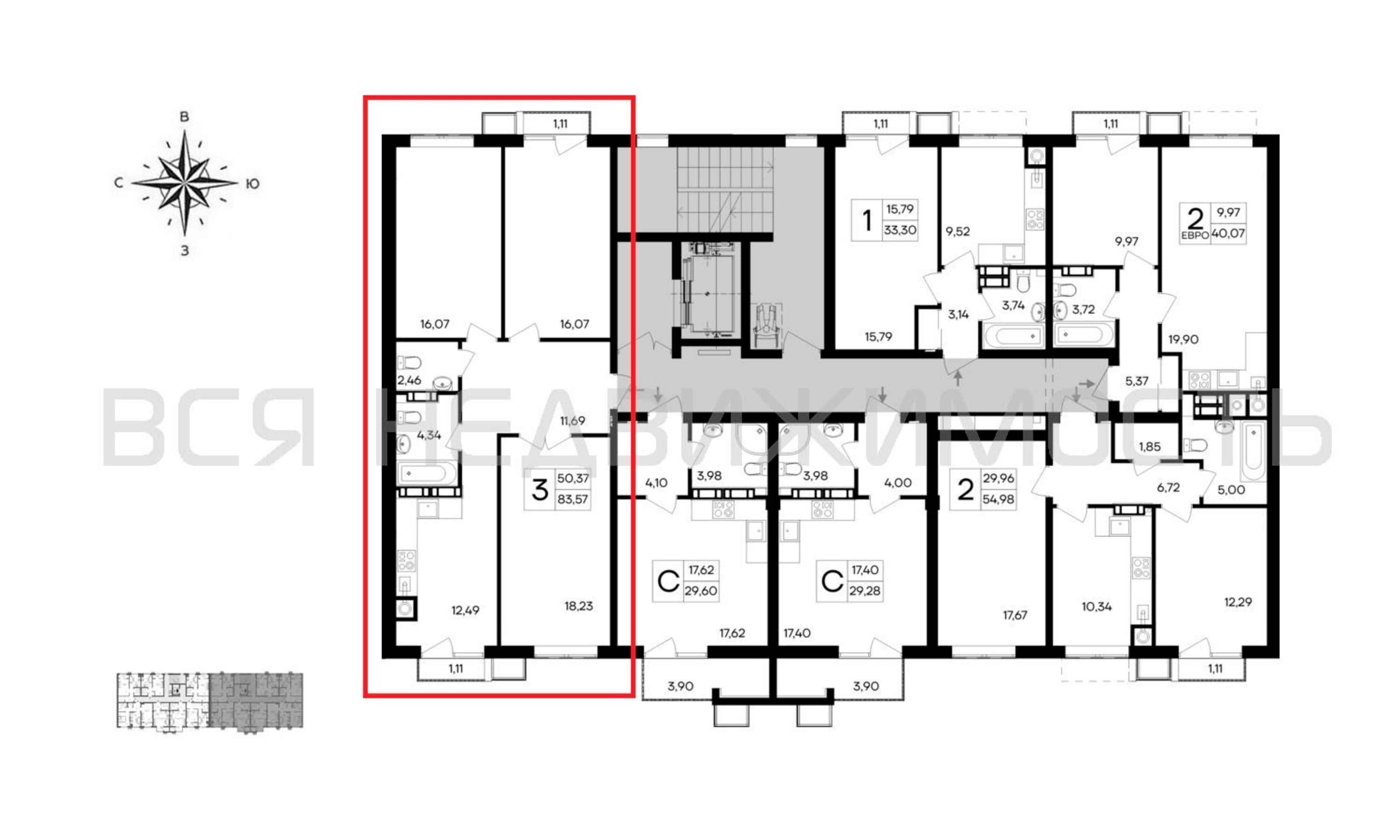 3-комнатная квартира, 83.57 м² 3/8 этаж ID объекта 100113269