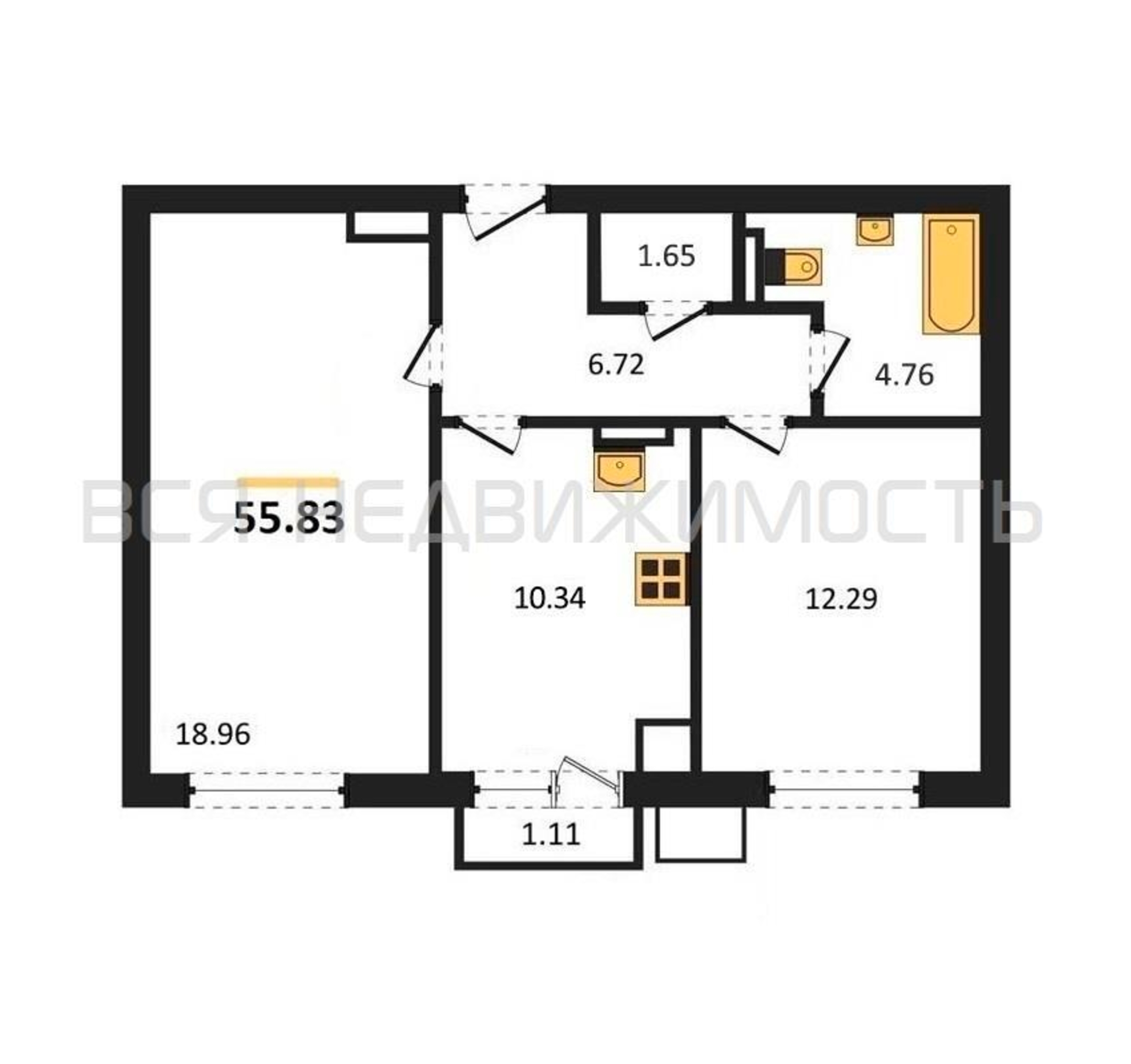 Строительная площадь55.83 м²