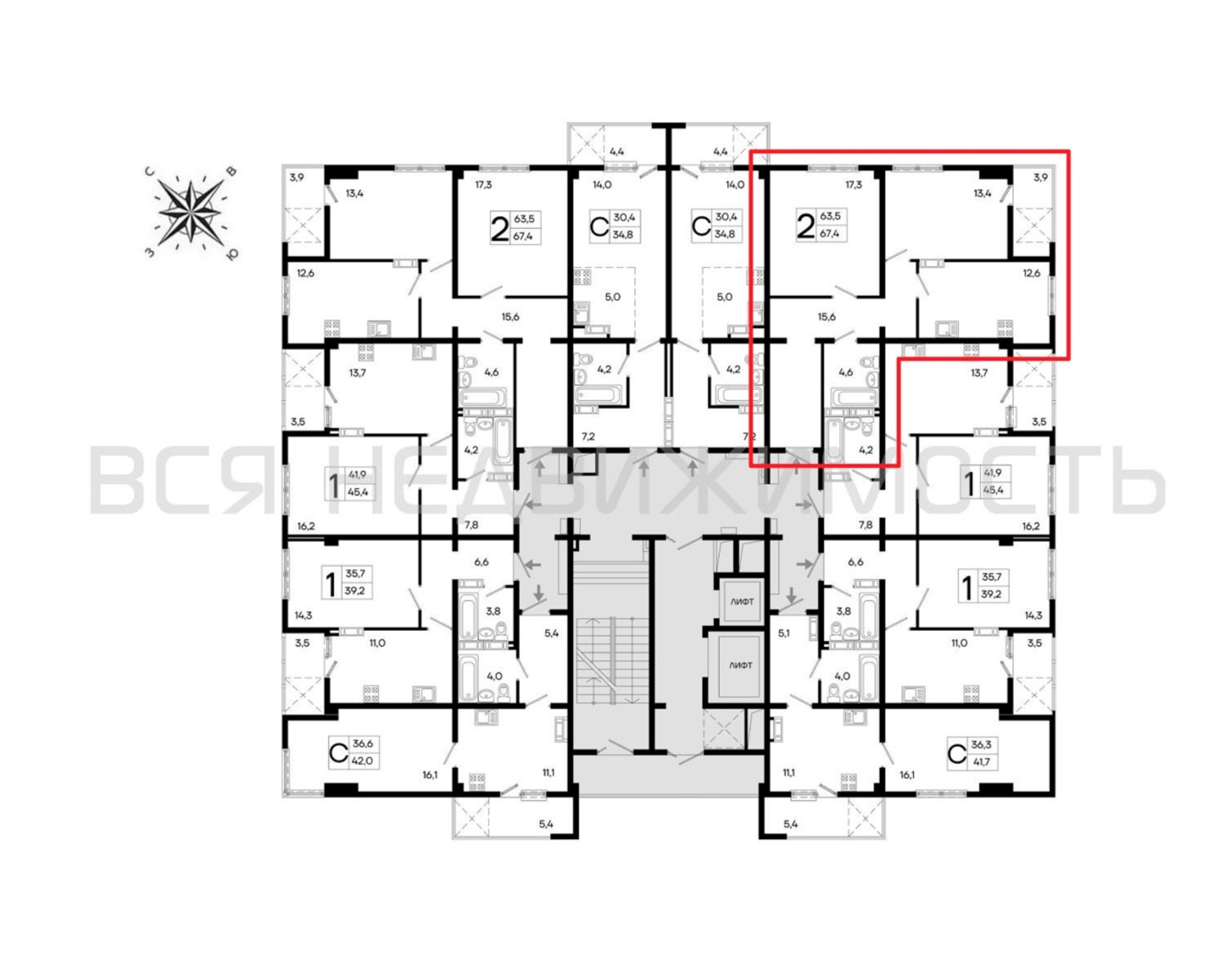 2-комнатная квартира, 67.40 м² 7/16 этаж ID объекта 100113470
