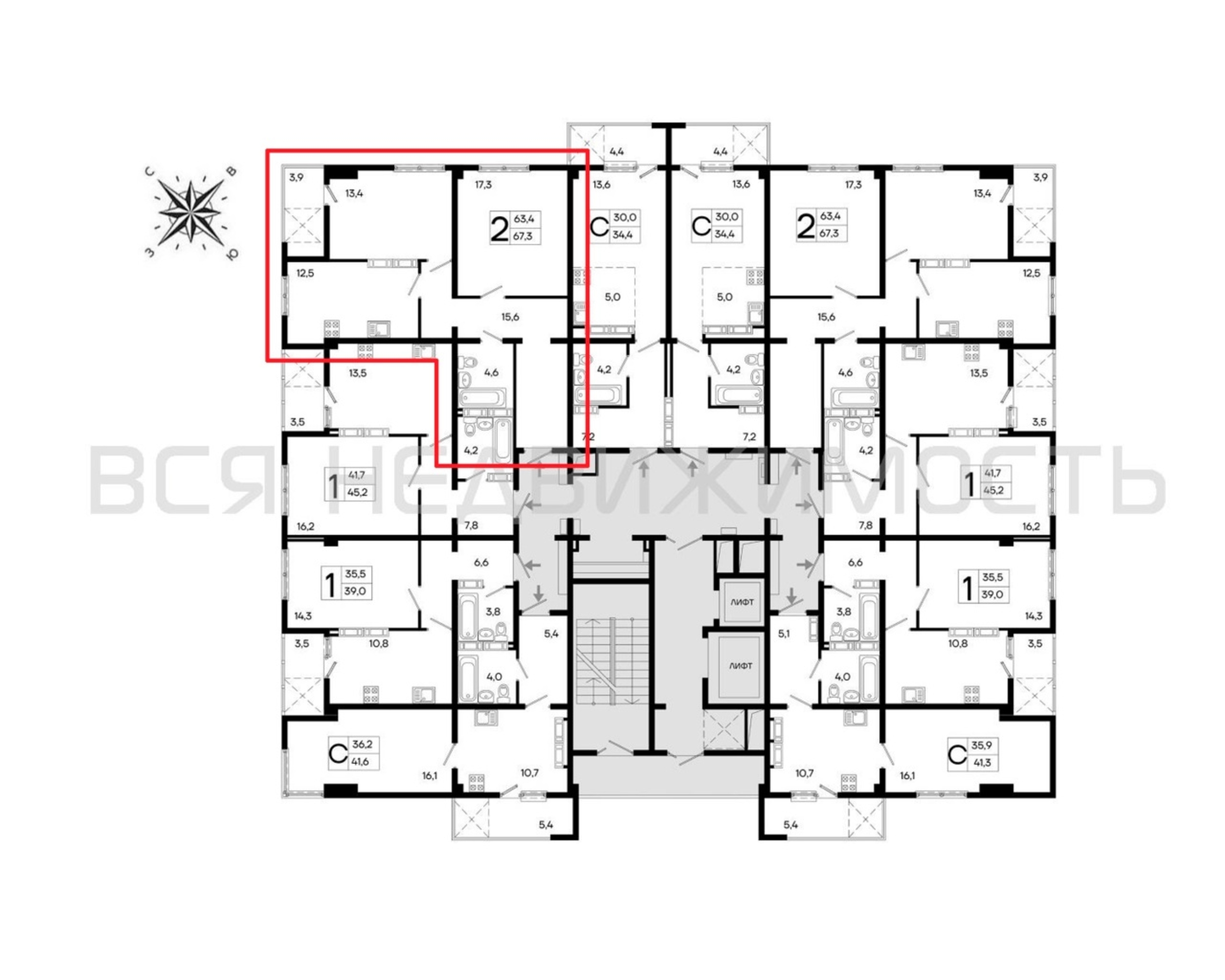 2-комнатная квартира, 67.30 м² 10/16 этаж ID объекта 100113497