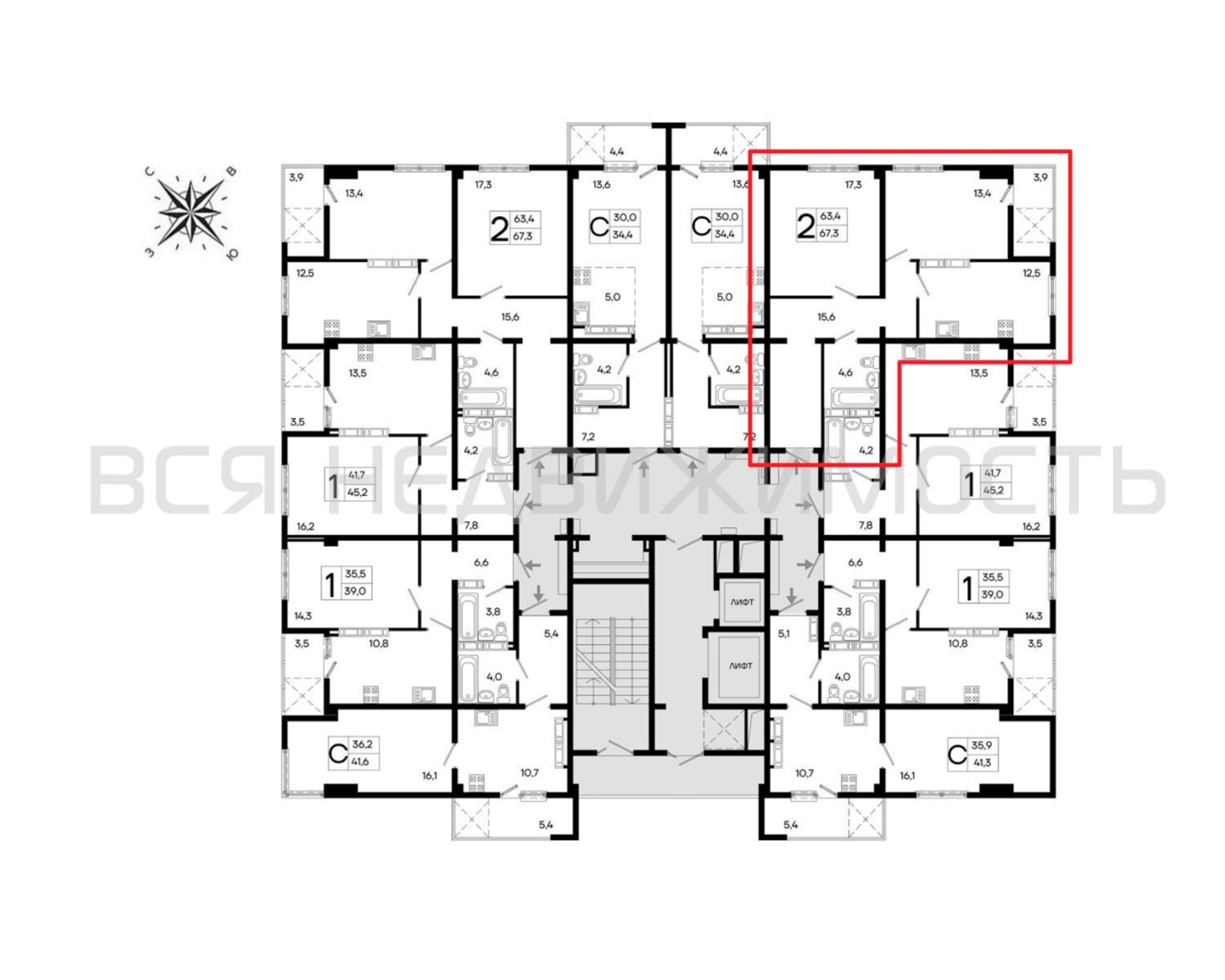 2-комнатная квартира, 67.30 м² 10/16 этаж ID объекта 100113500
