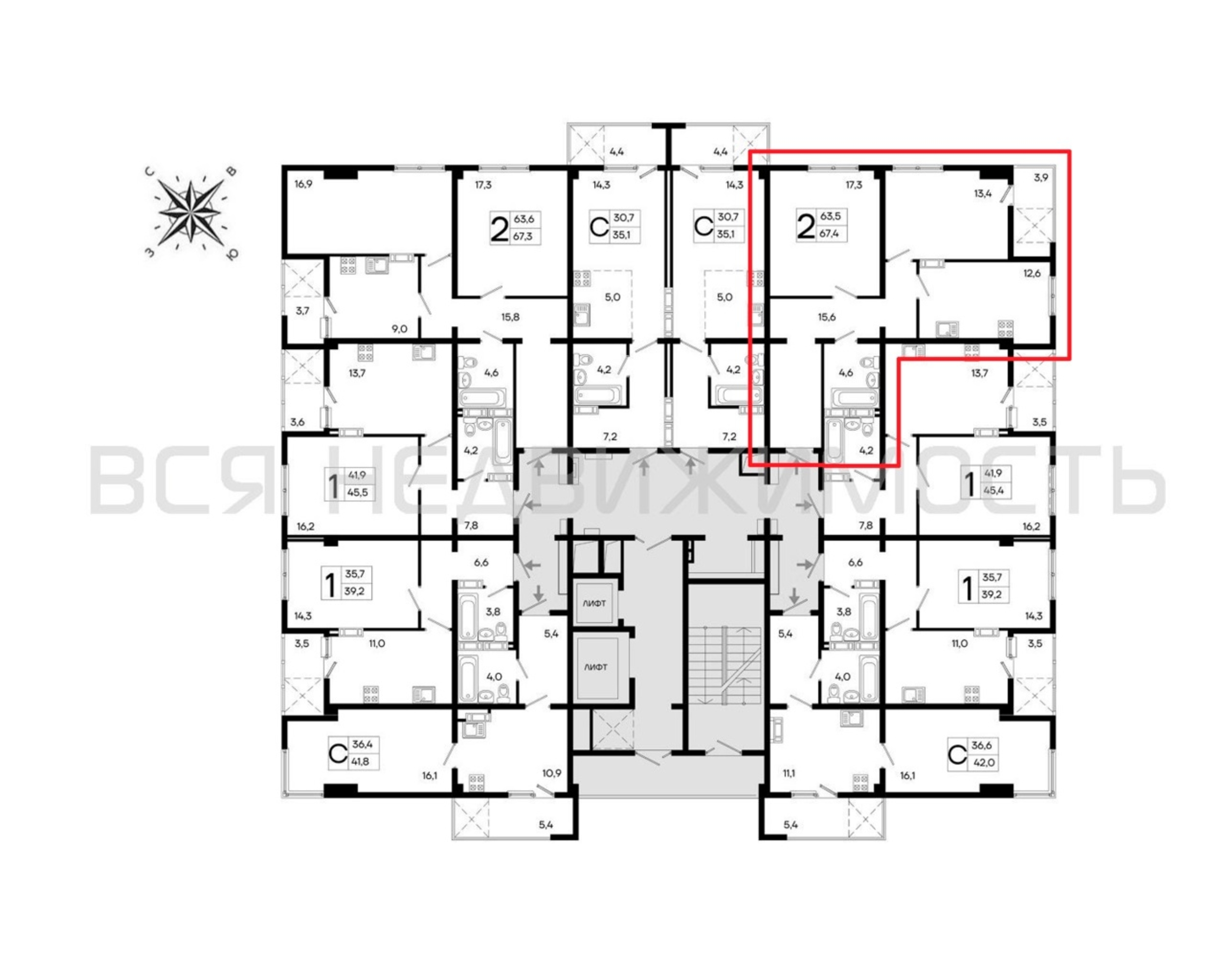 2-комнатная квартира, 67.40 м² 2/16 этаж ID объекта 100113564