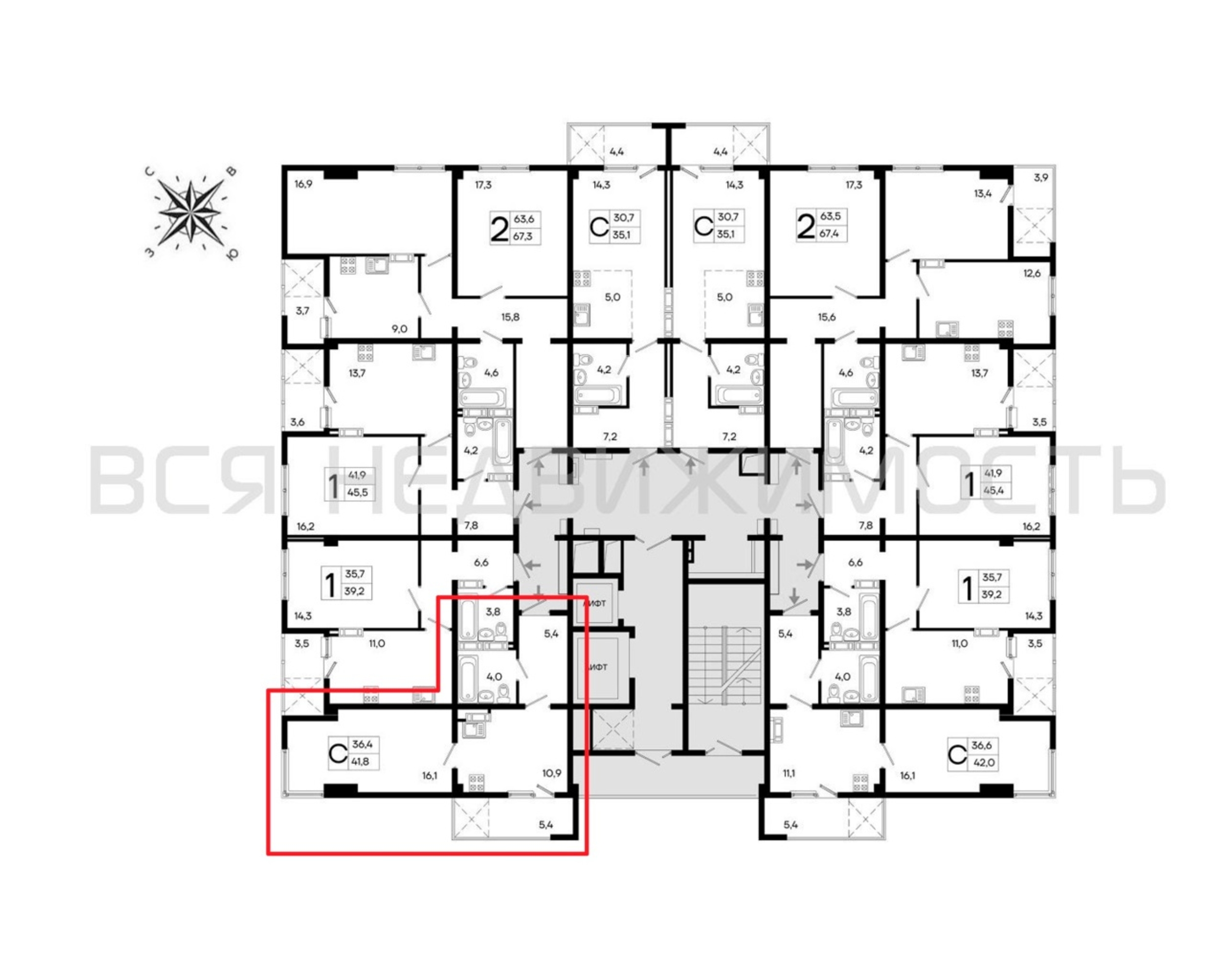 1-комнатная квартира, 41.80 м² 3/16 этаж ID объекта 100113568