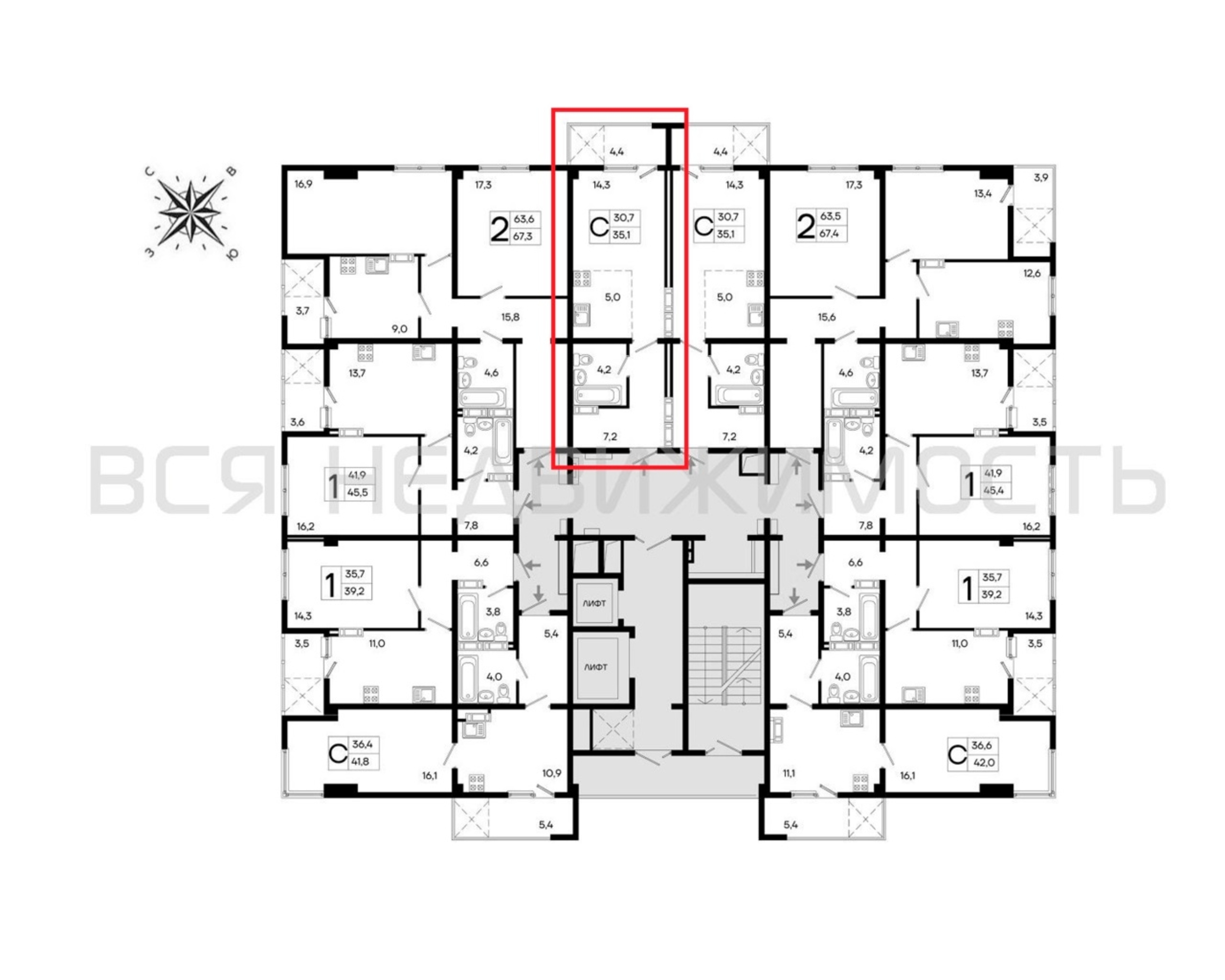Квартиры-студии, 35.10 м² 6/16 этаж ID объекта 100113602