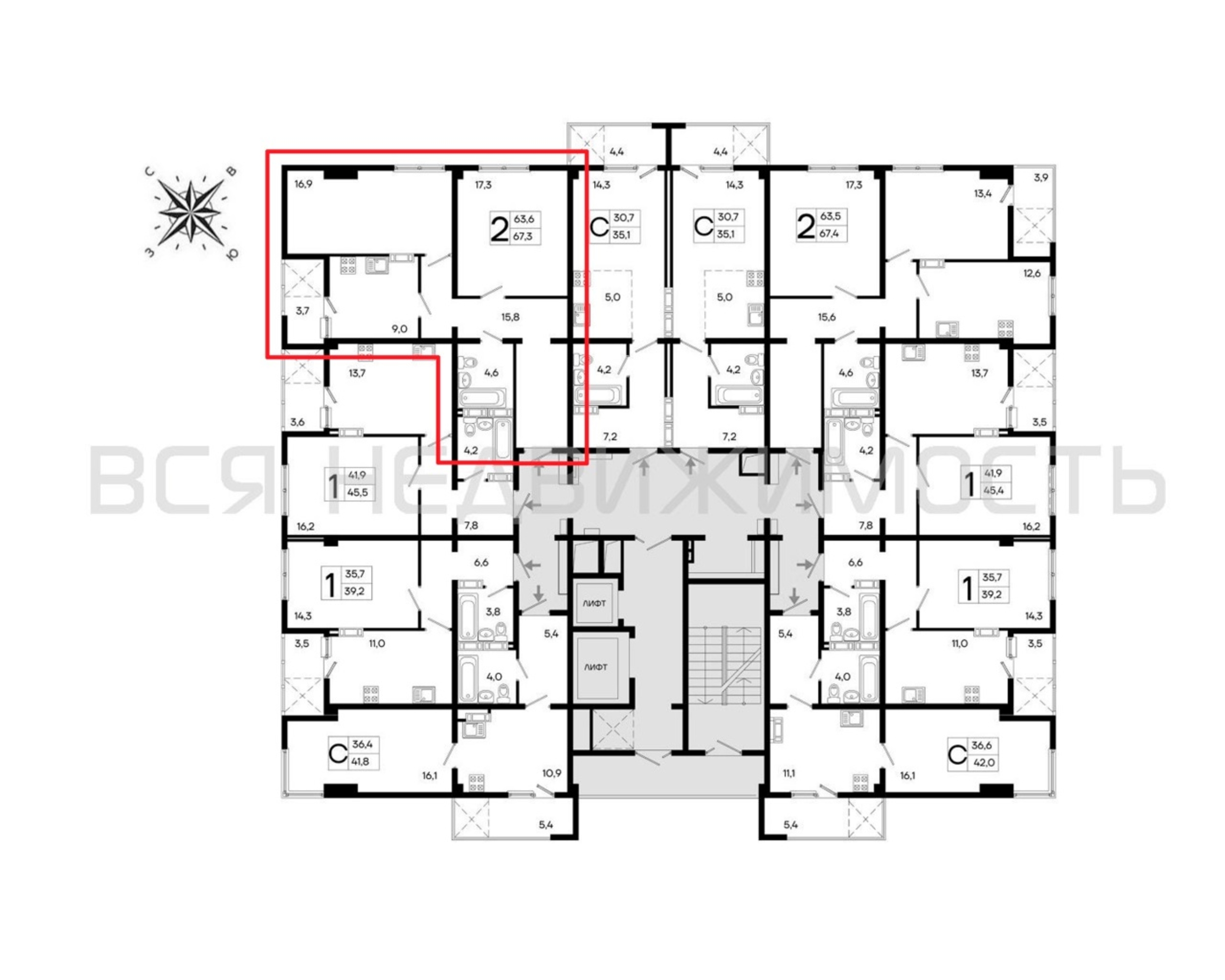 2-комнатная квартира, 67.30 м² 9/16 этаж ID объекта 100113631