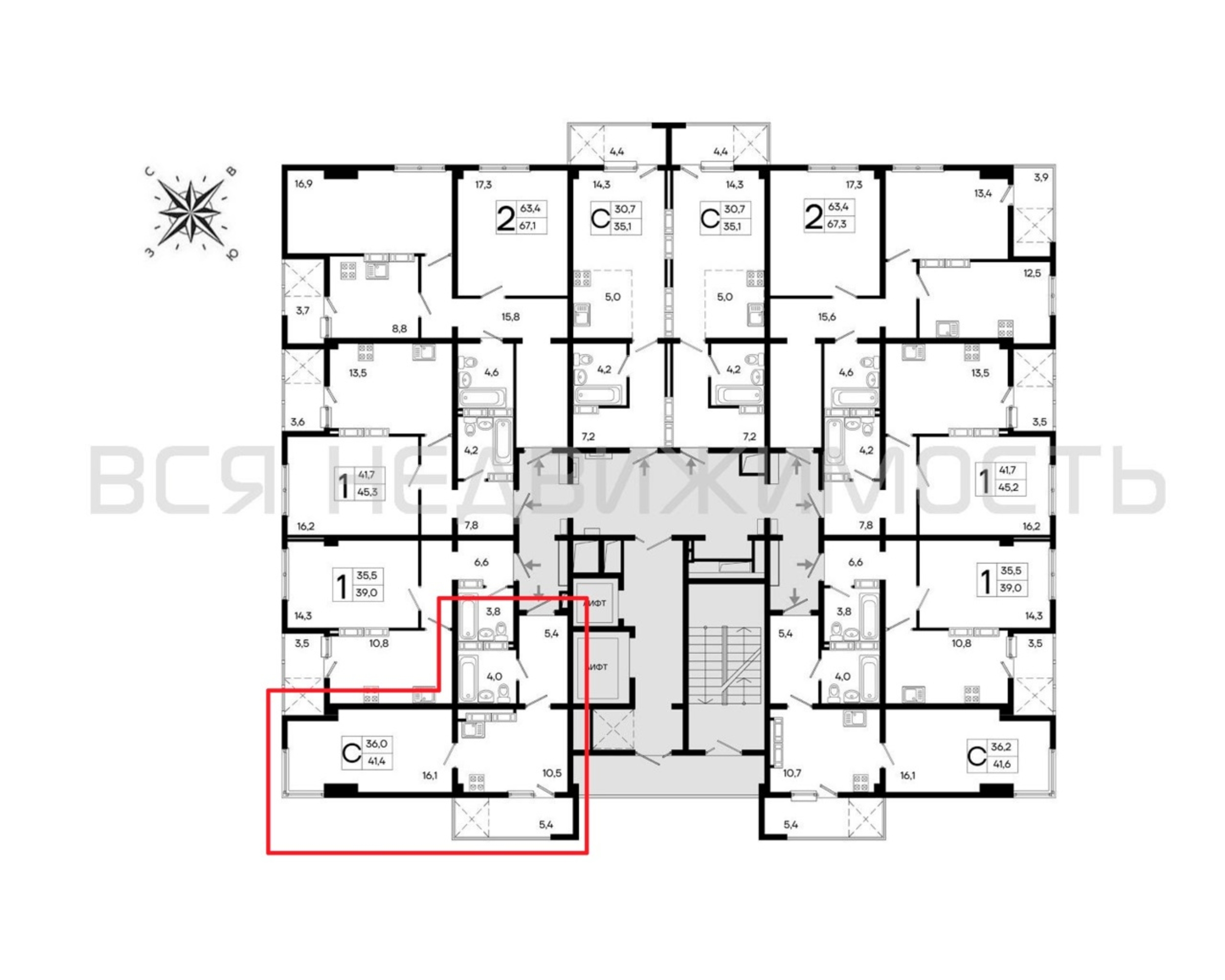 1-комнатная квартира, 41.40 м² 13/16 этаж ID объекта 100113668