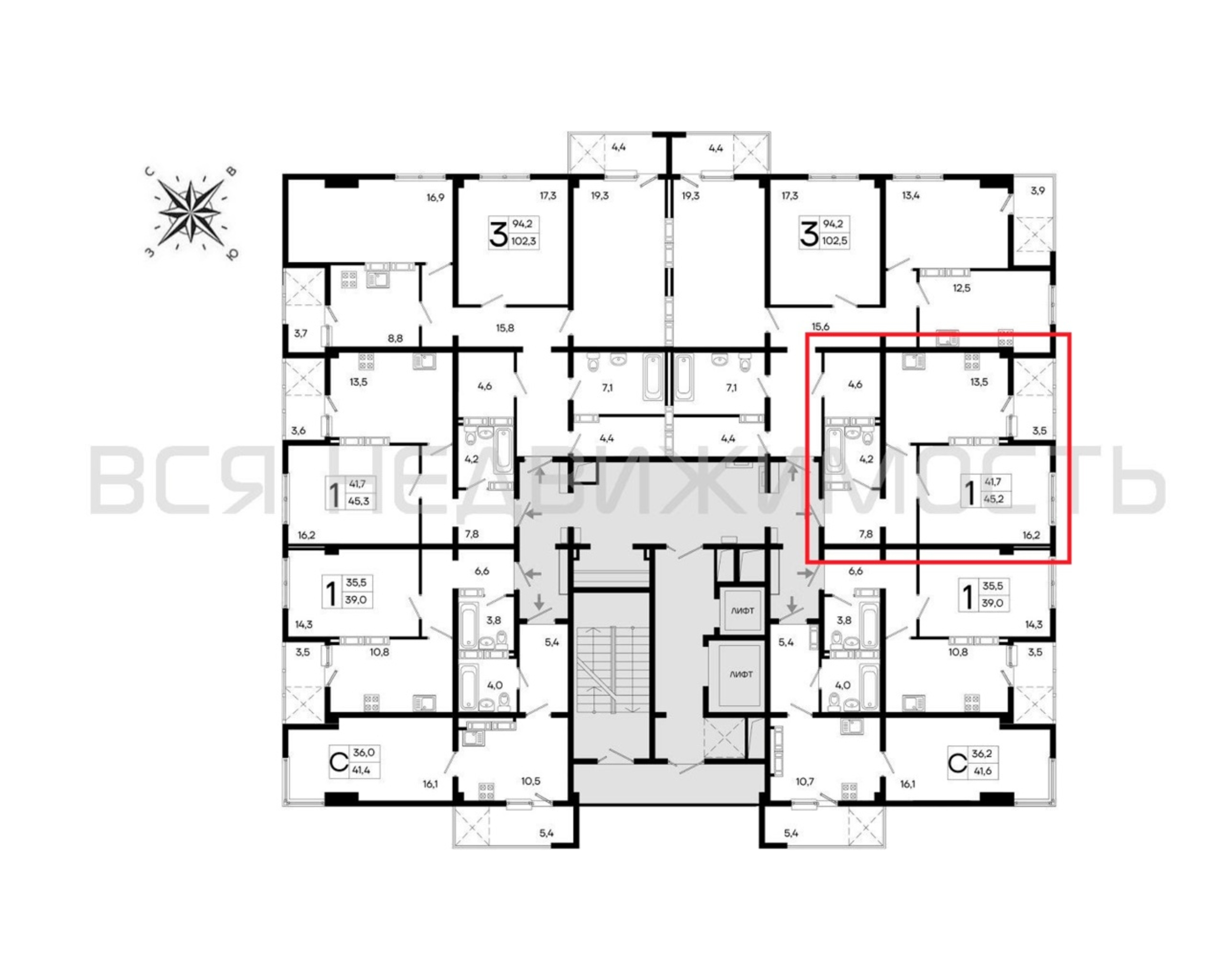 1-комнатная квартира, 45.20 м² 16/16 этаж ID объекта 100113701