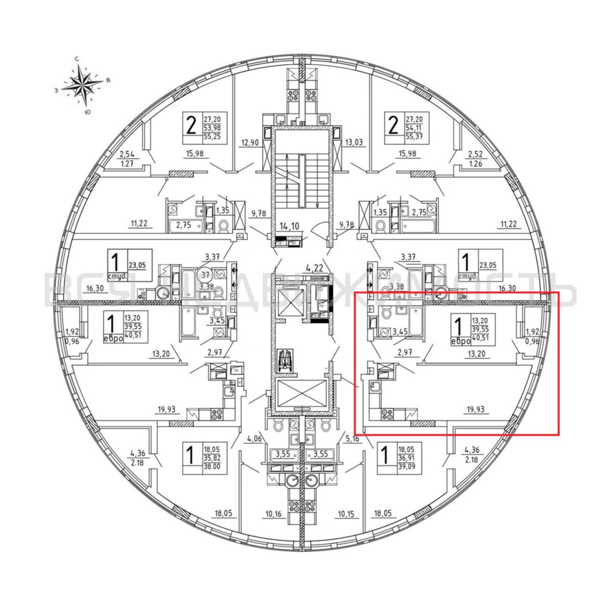 Общая площадь39.55 м²