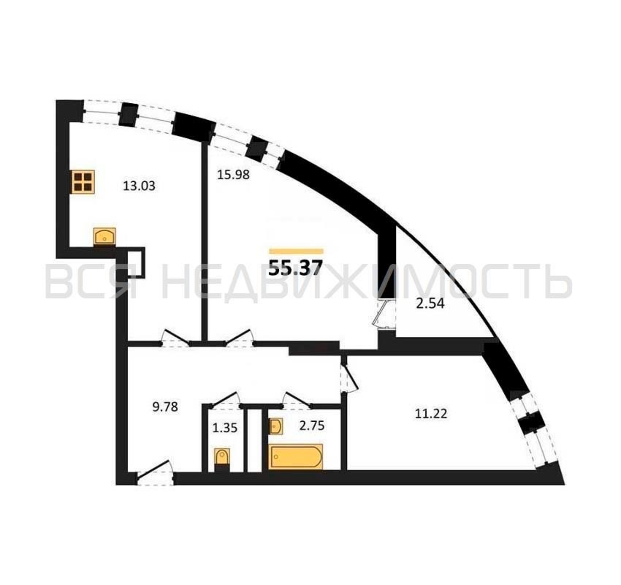 Строительная площадь55.37 м²