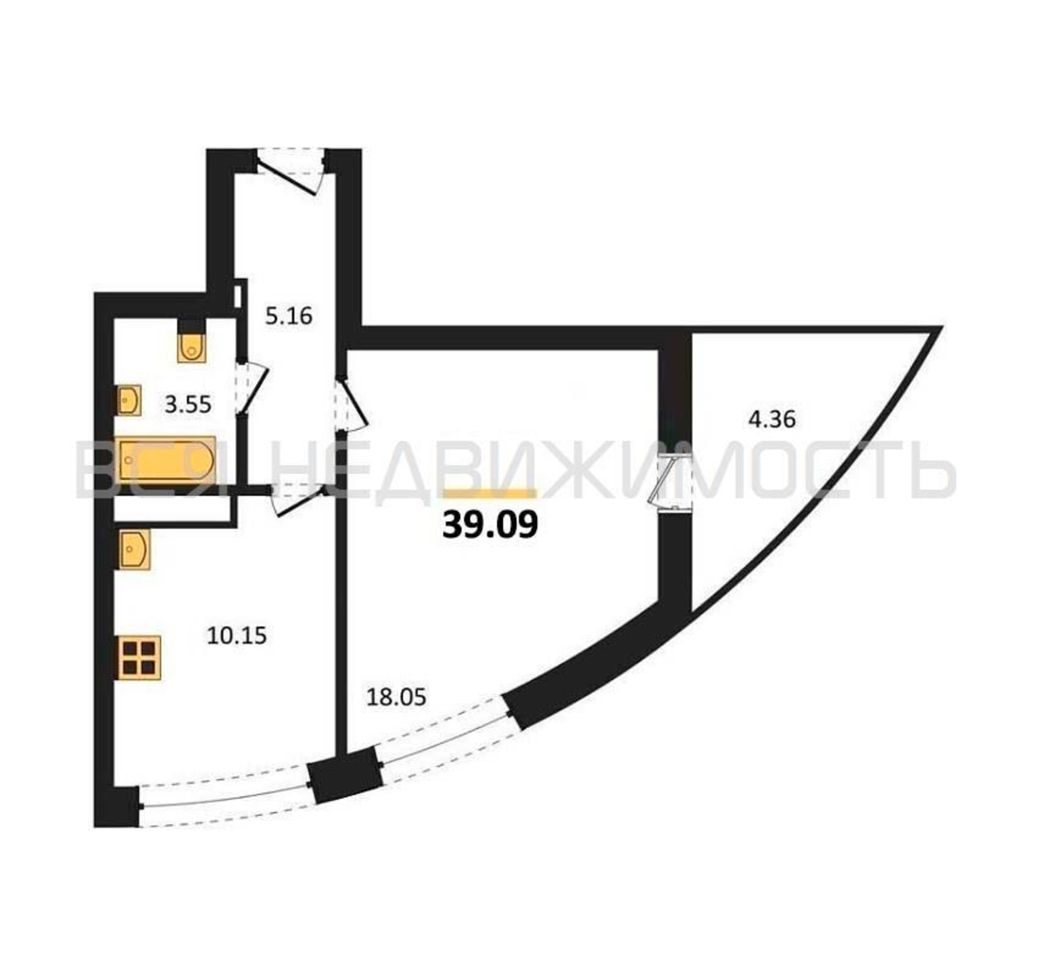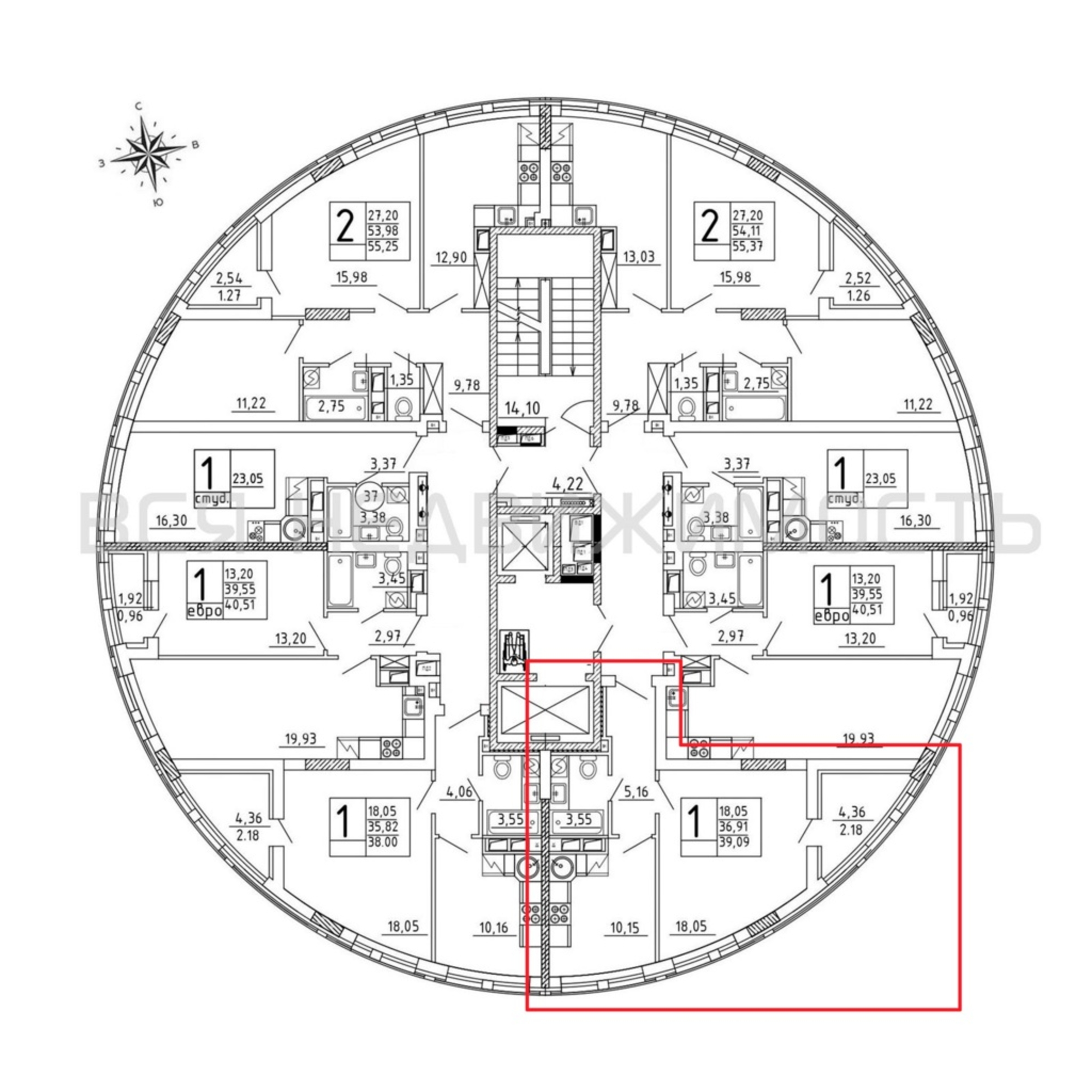 1-комнатная квартира, 39.09 м² 13/18 этаж ID объекта 100113886