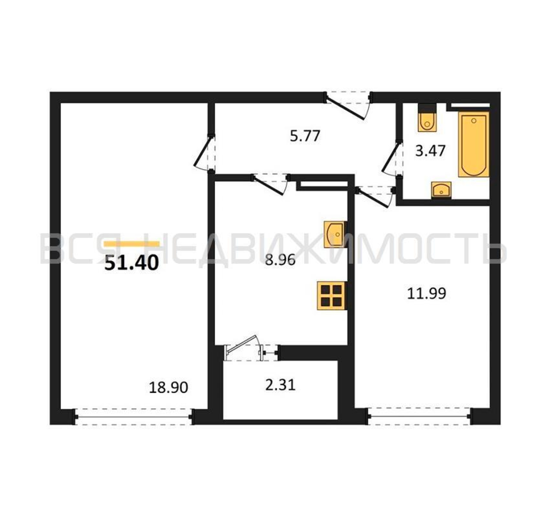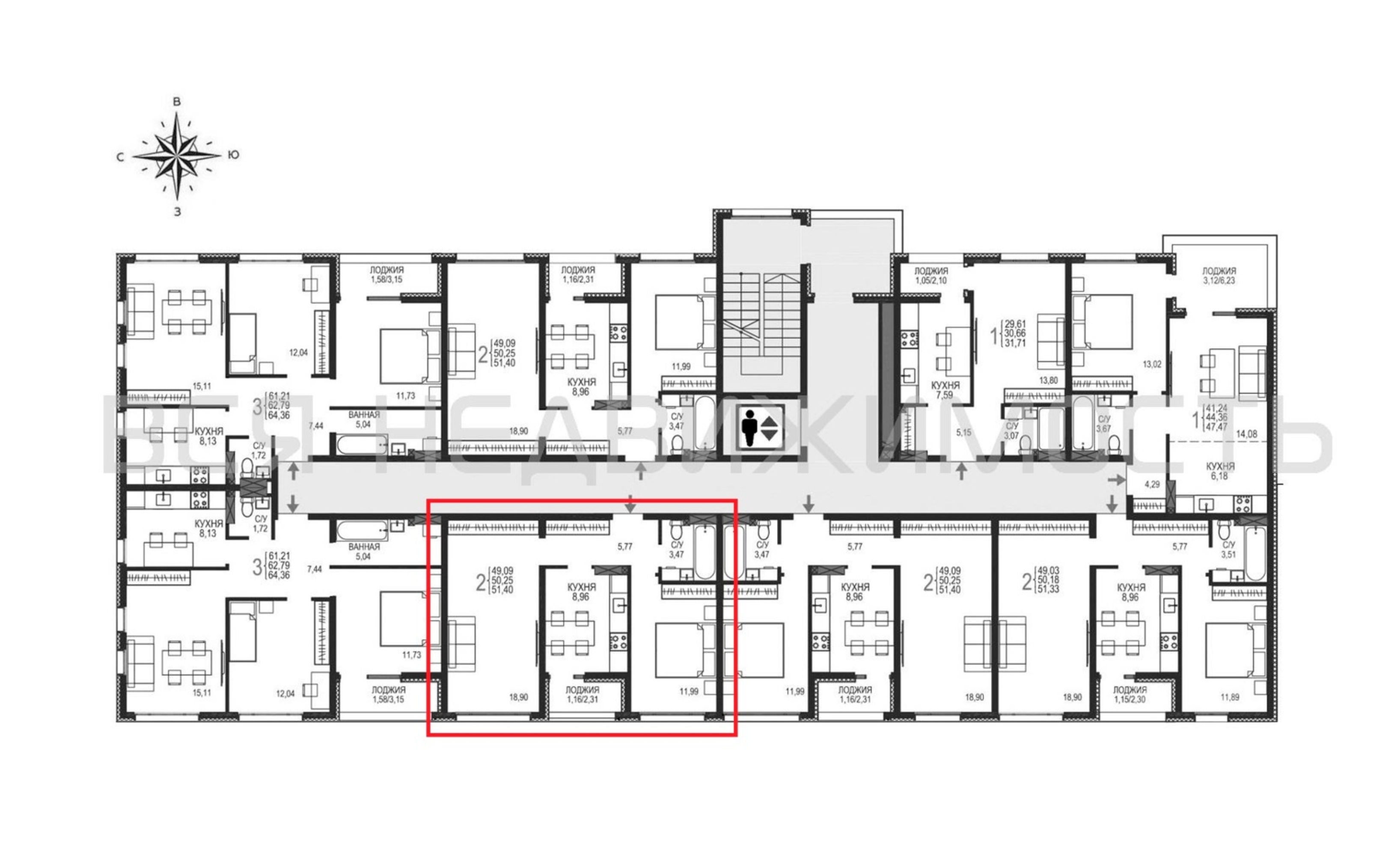 2-комнатная квартира, 51.40 м² 7/8 этаж ID объекта 100113981