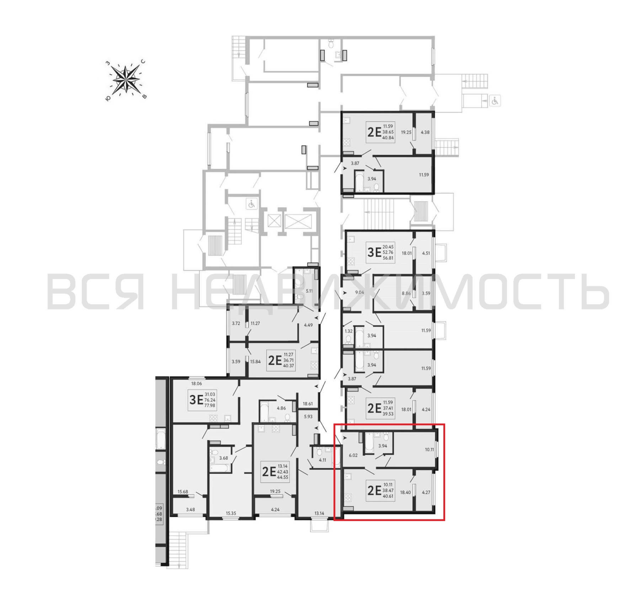 1-комнатная квартира, 40.61 м² 1/10 этаж ID объекта 100114075