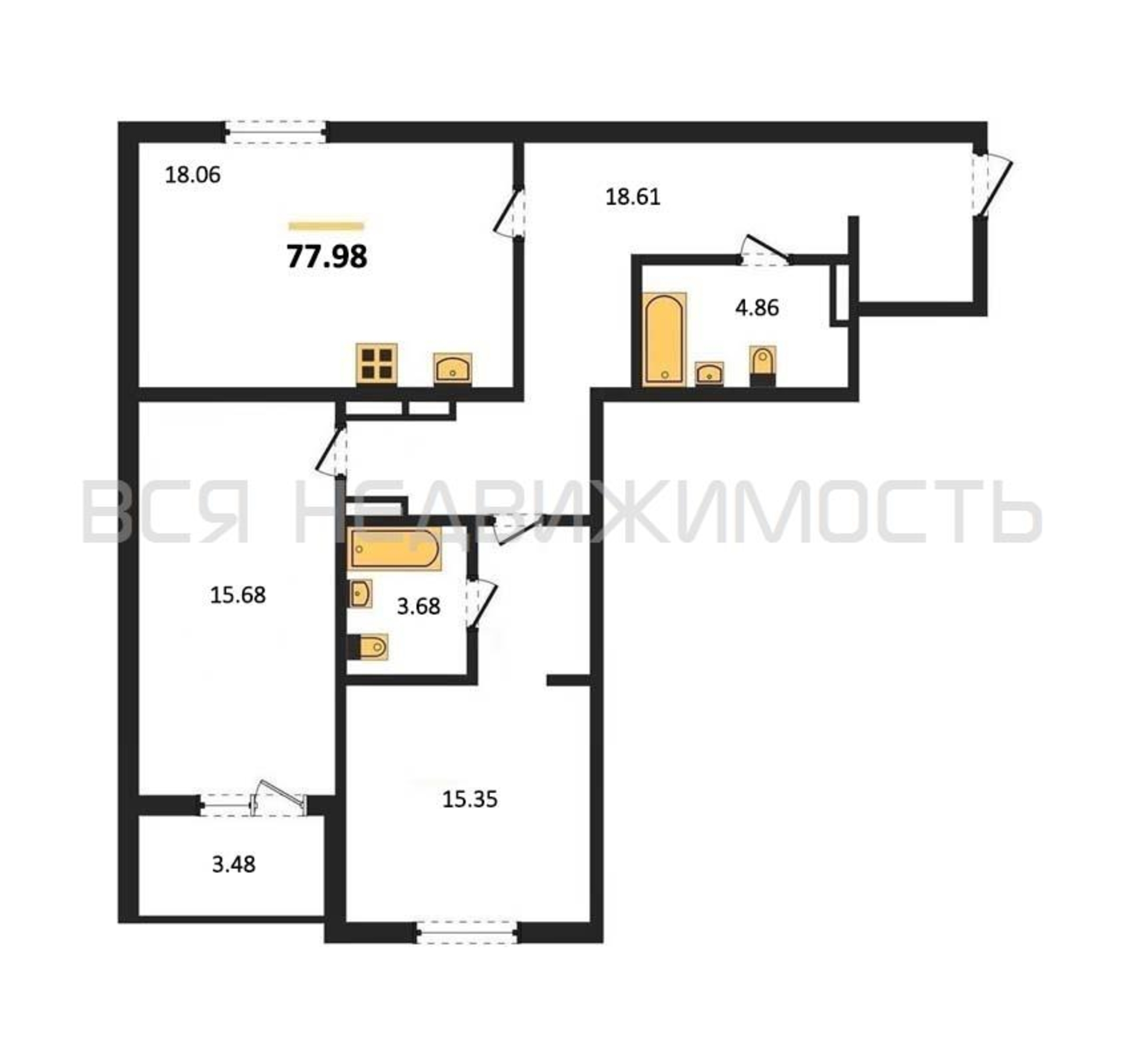 2-комнатная квартира, 77.98 м² 1/10 этаж ID объекта 100114076