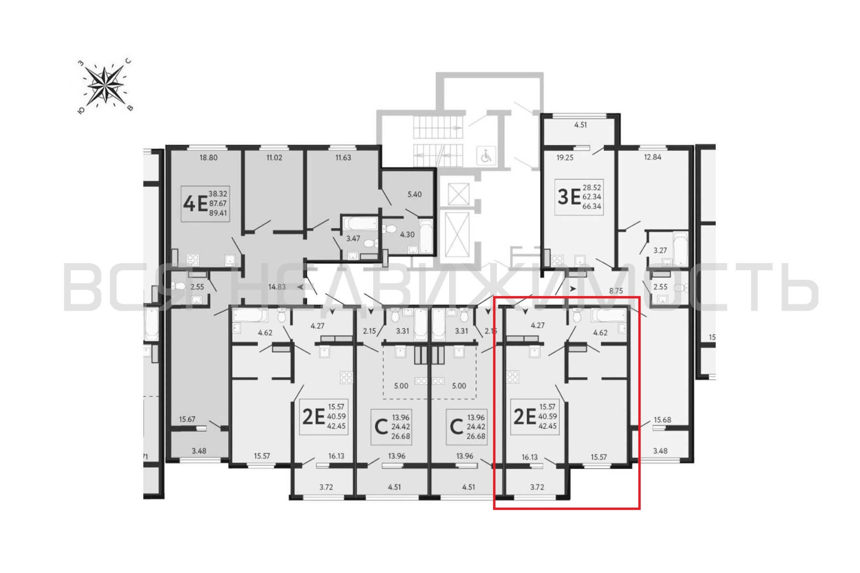 1-комнатная квартира, 42.45 м² 6/14 этаж ID объекта 100114130
